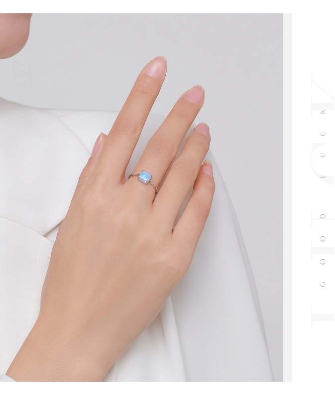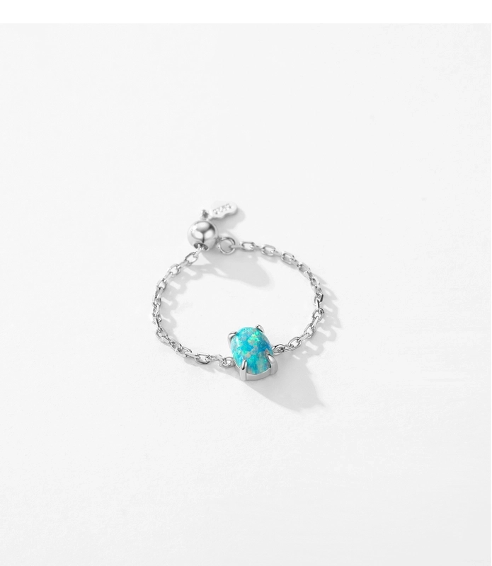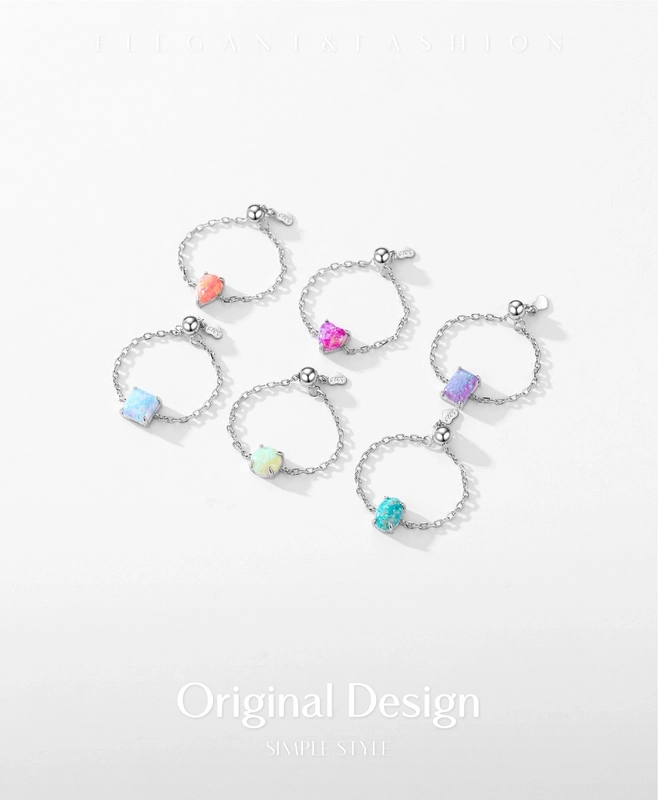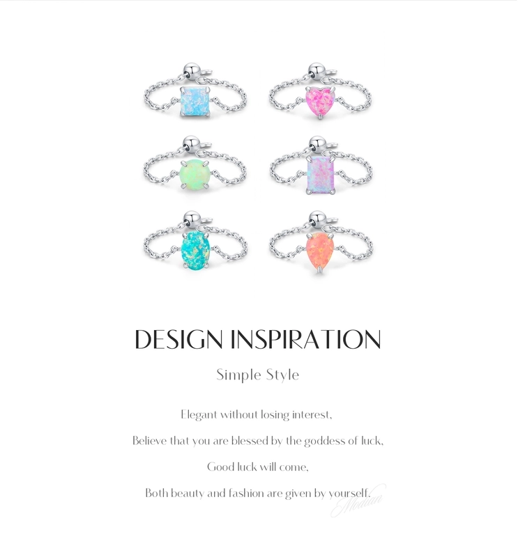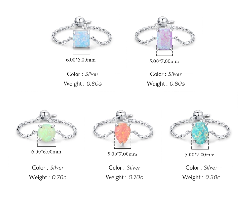Rhodium Plated 925 Sterling Silver Opal Geometric Water Droplets Heart Shape Open Rings