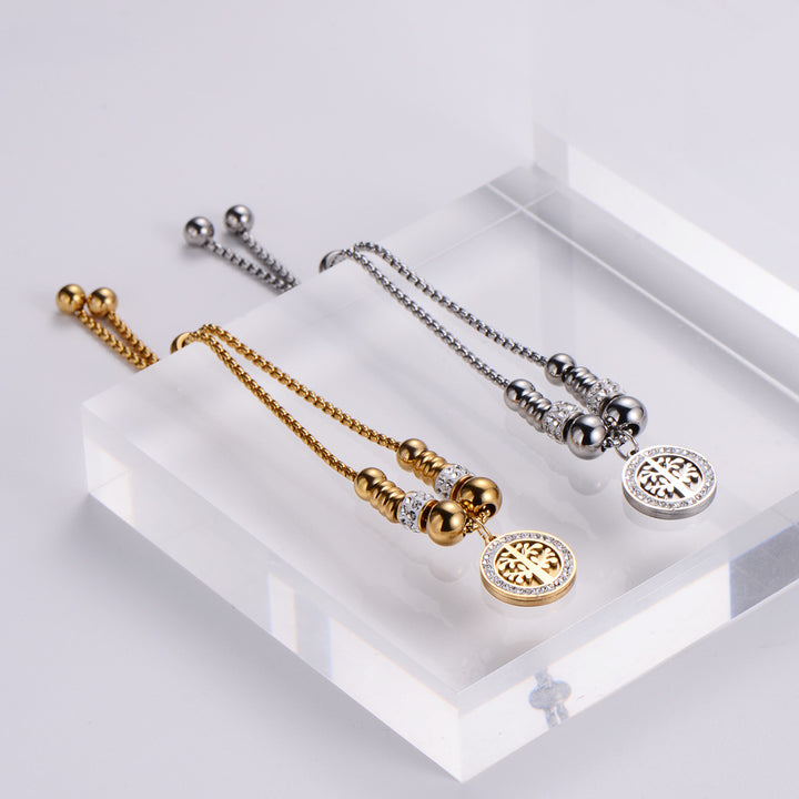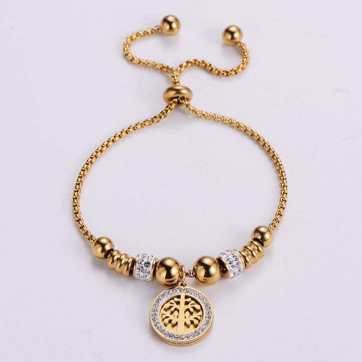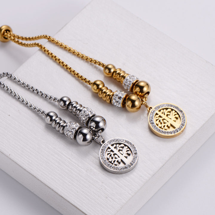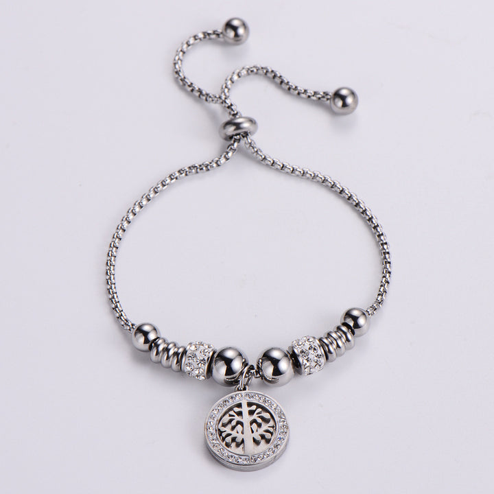 Rustic Women Metal Diamond Tree Titanium Steel Diamond Inlay Bracelets