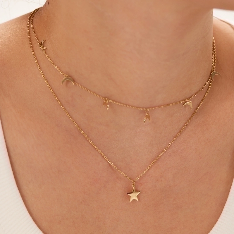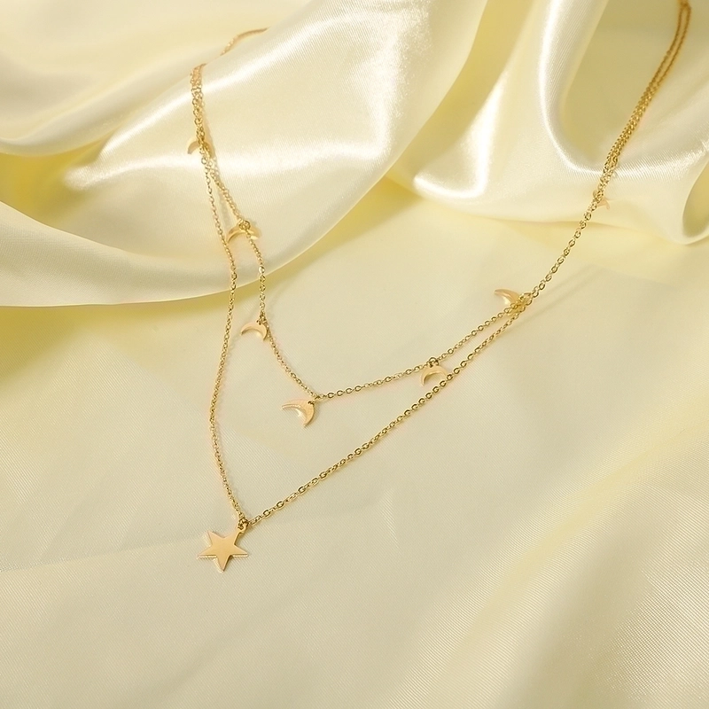 Stainless Steel Modern Style Minimalist Plating Inlay Star Moon Layered Necklaces