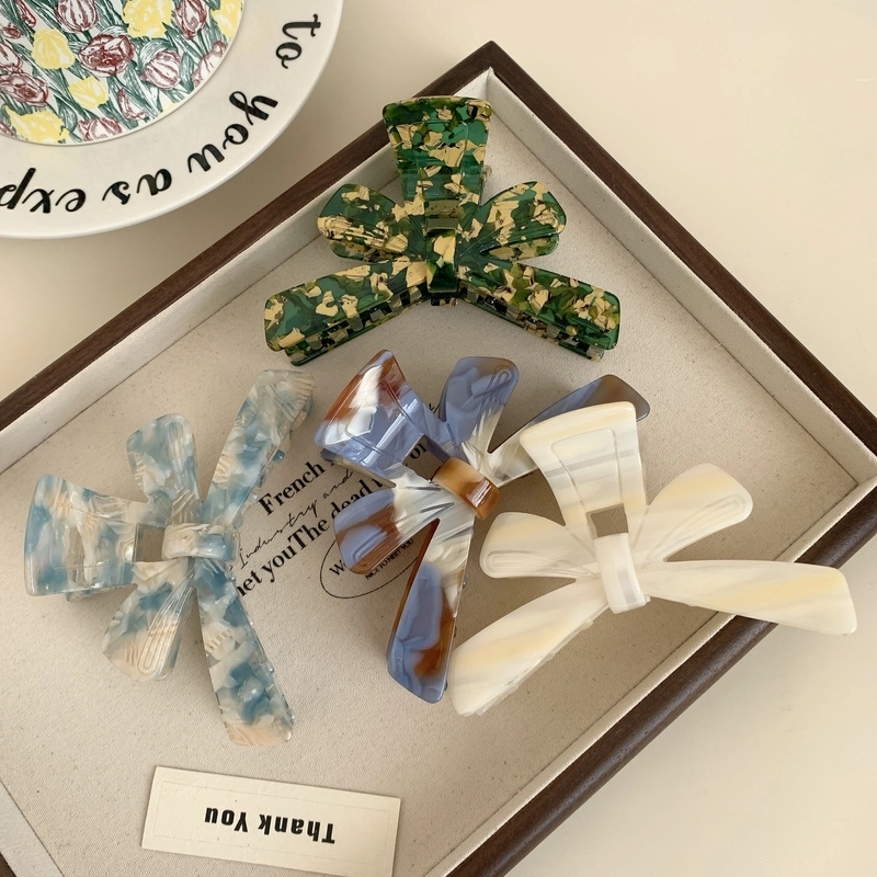 Summer New Bow Tie Acetate Grip French Oversized Hair Claw Back Head Updo High Sense Shark Clip Hair Accessories
