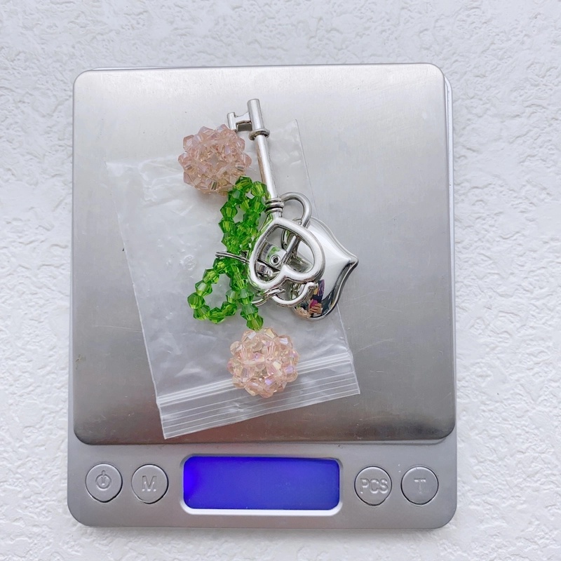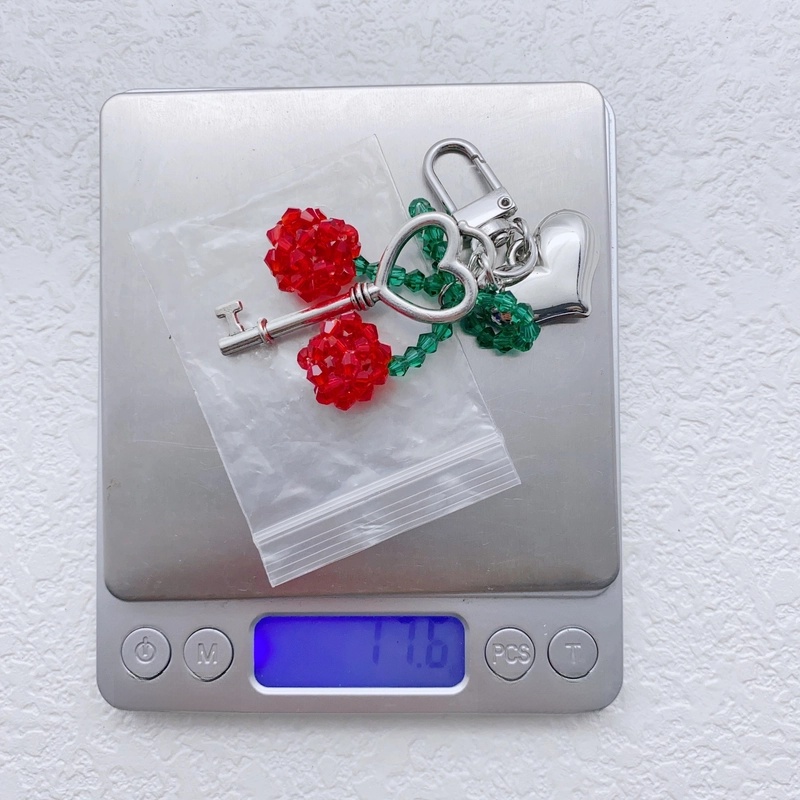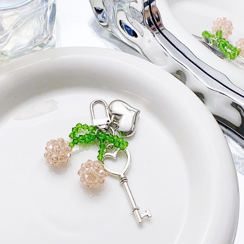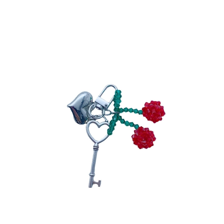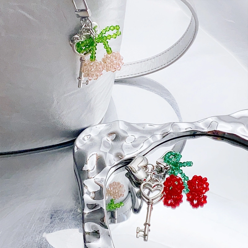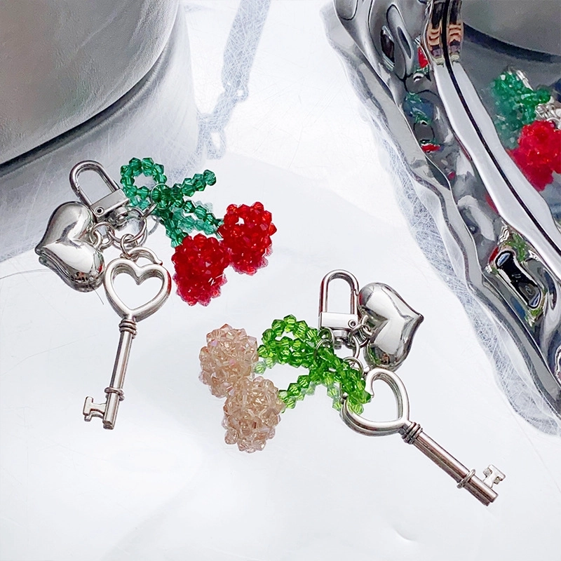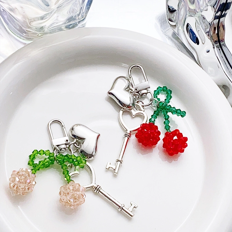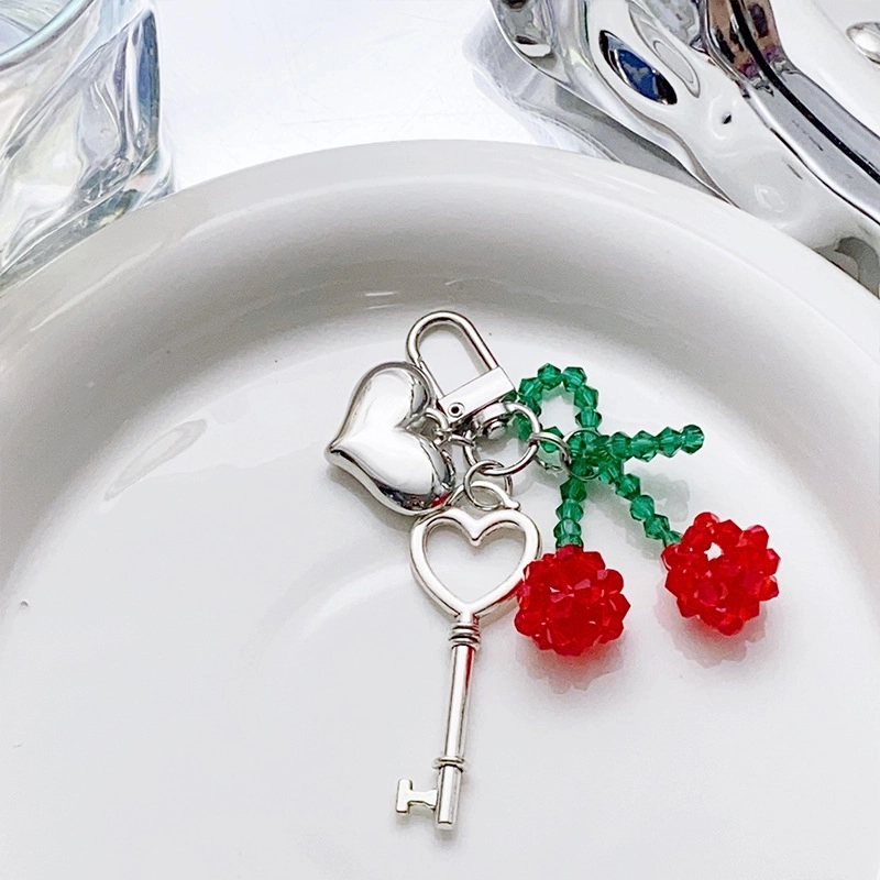 Summer Sweet Niche Design Handmade Woven Crystal Cherry Love Lock Keychain Simple Bag Pendant