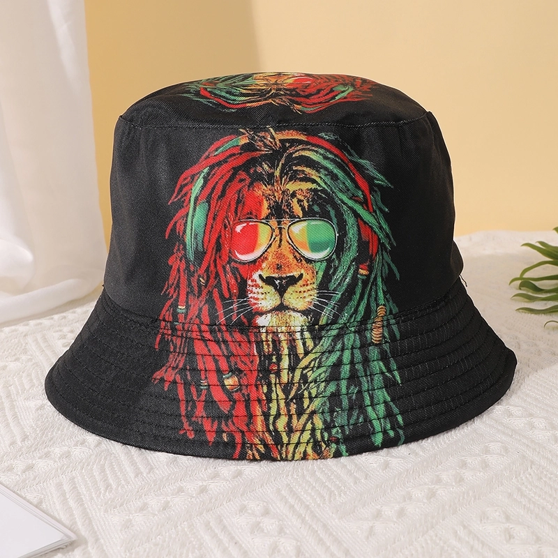 Unisex Casual Sports Commute National Flag Lion Printing Curved Eaves Bucket Hat