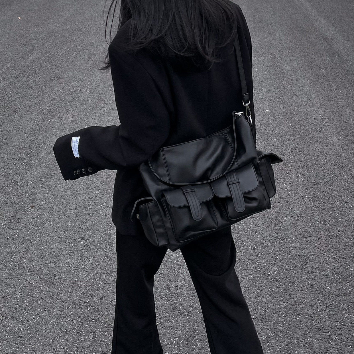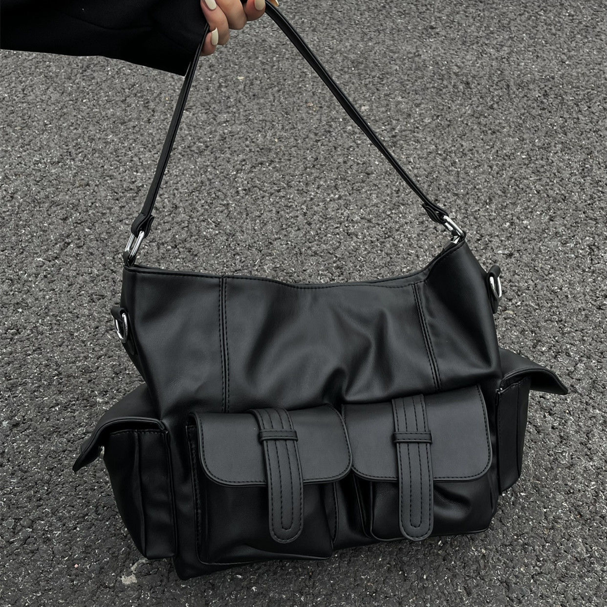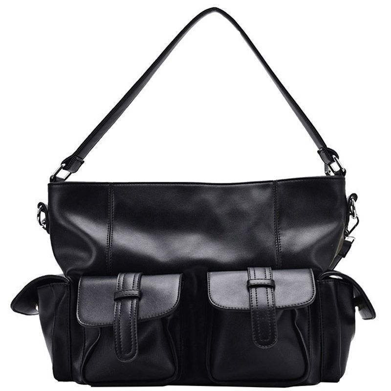 Unisex Large Pu Leather Solid Color Streetwear Square Zipper Crossbody Bag
