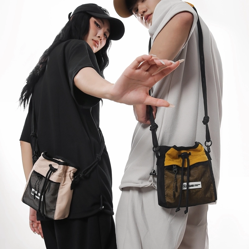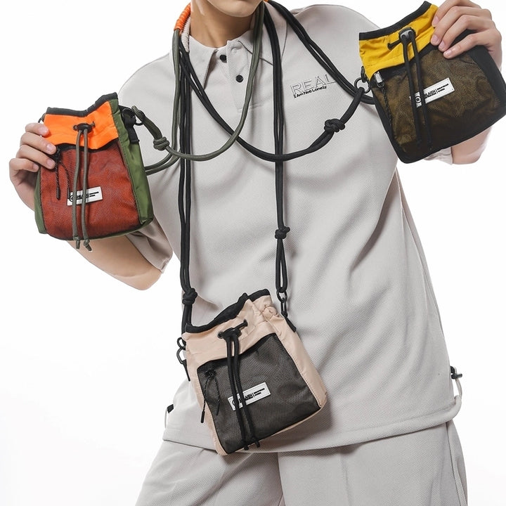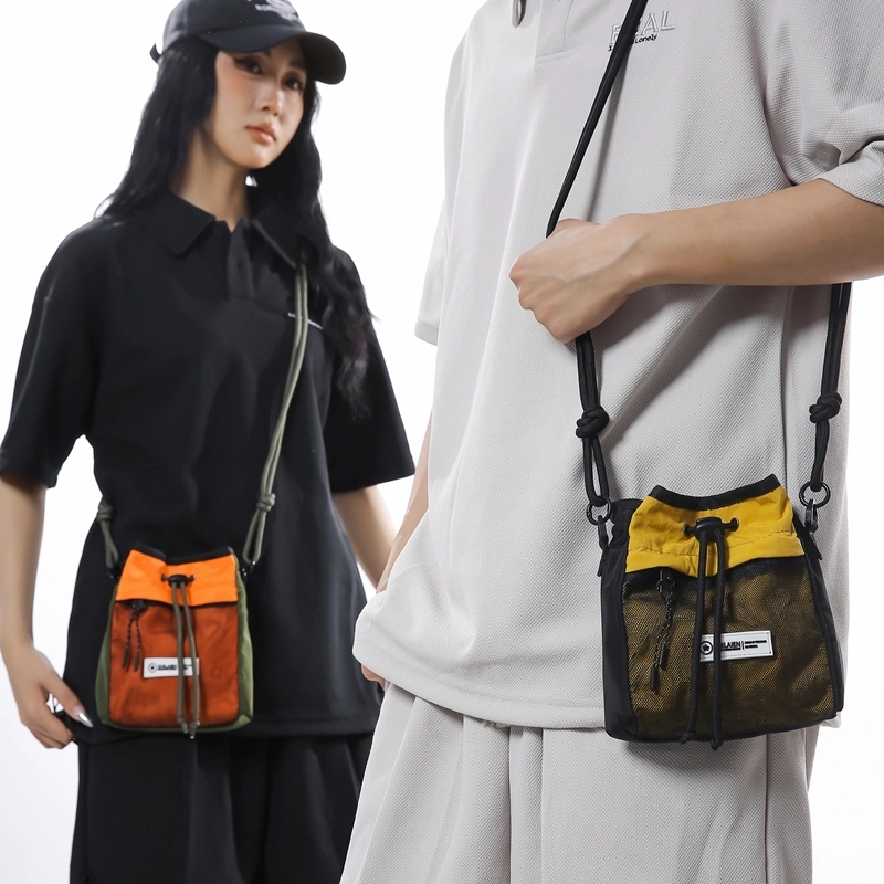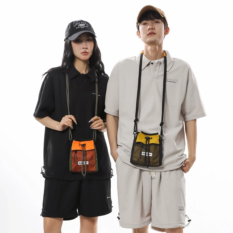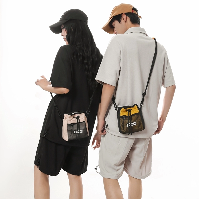 Unisex Medium Nylon Color Block Streetwear Sports Sewing Thread Square String Crossbody Bag