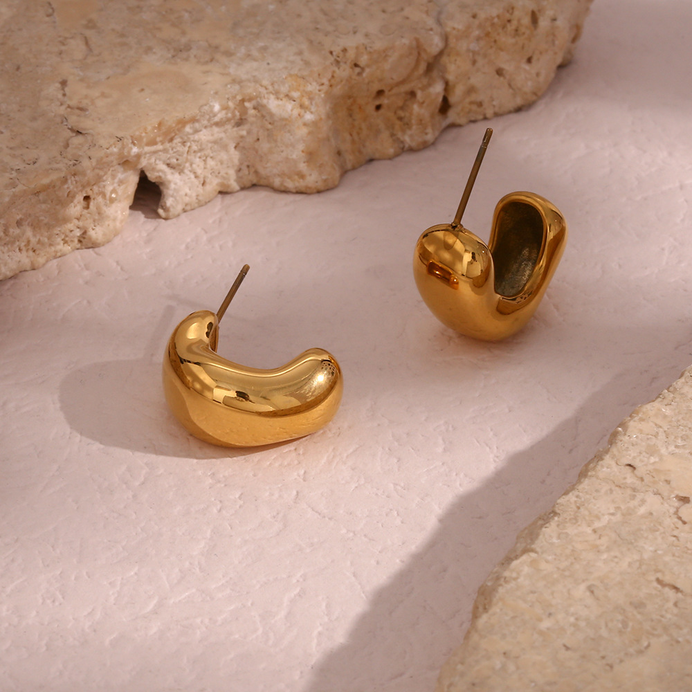 Vintage Style C Shape Plating 304 Stainless Steel 18K Gold Plated Earrings