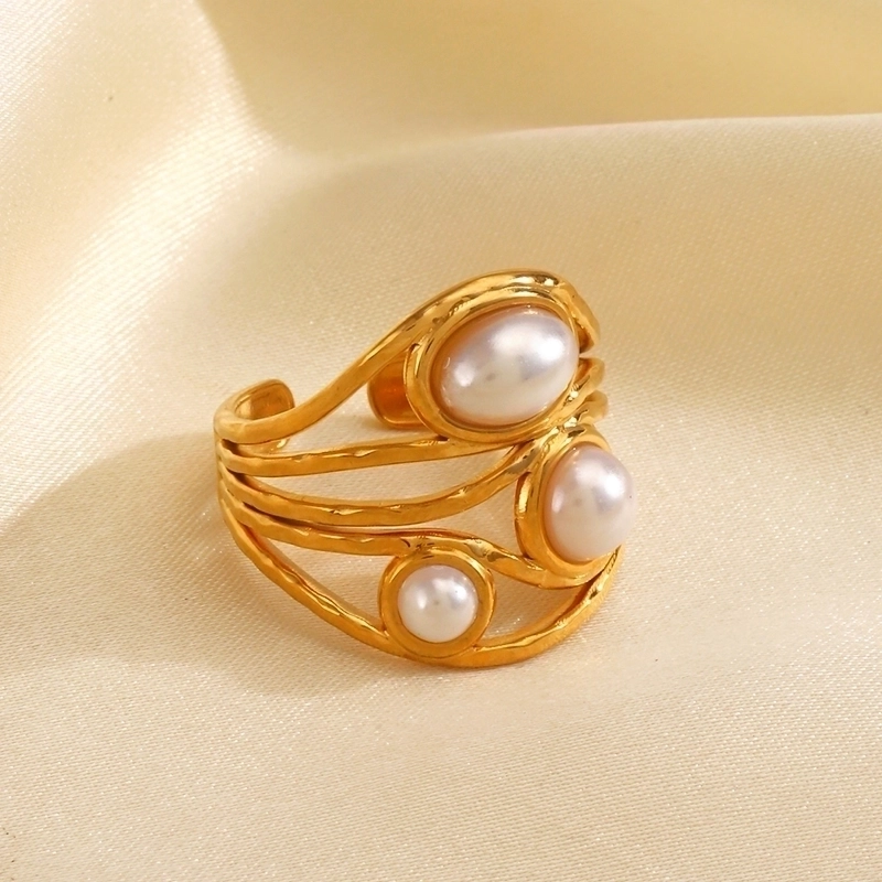 Vintage Style Lines 304 Stainless Steel Artificial Pearls 18K Gold Plated Plating Stainless Steel Rings