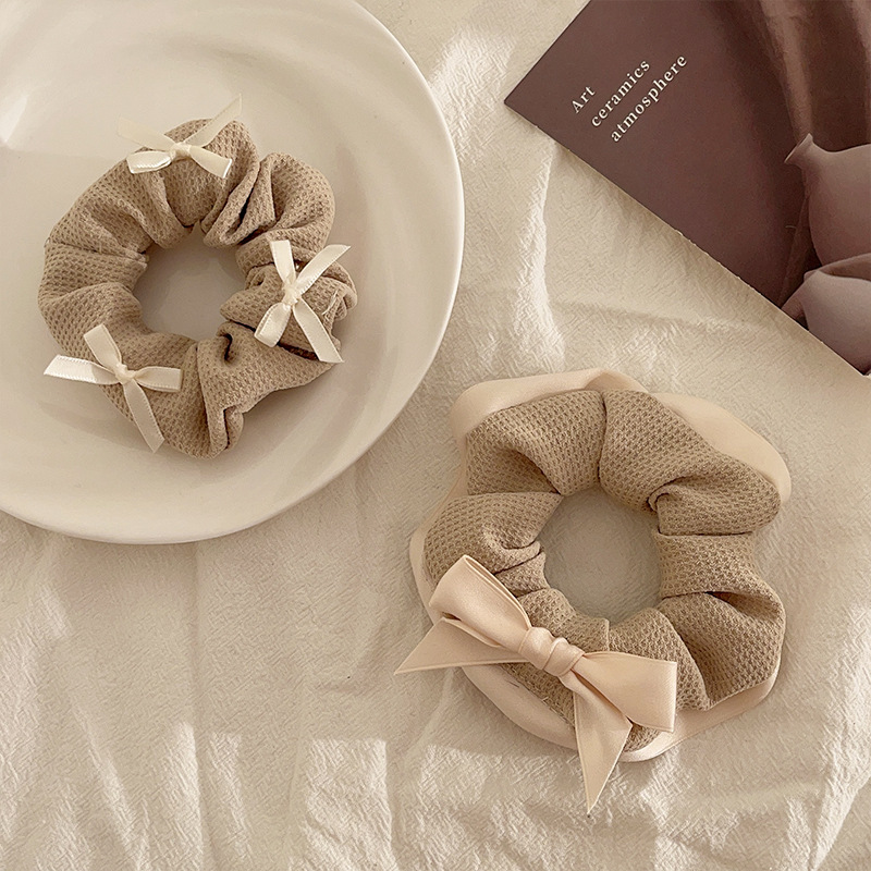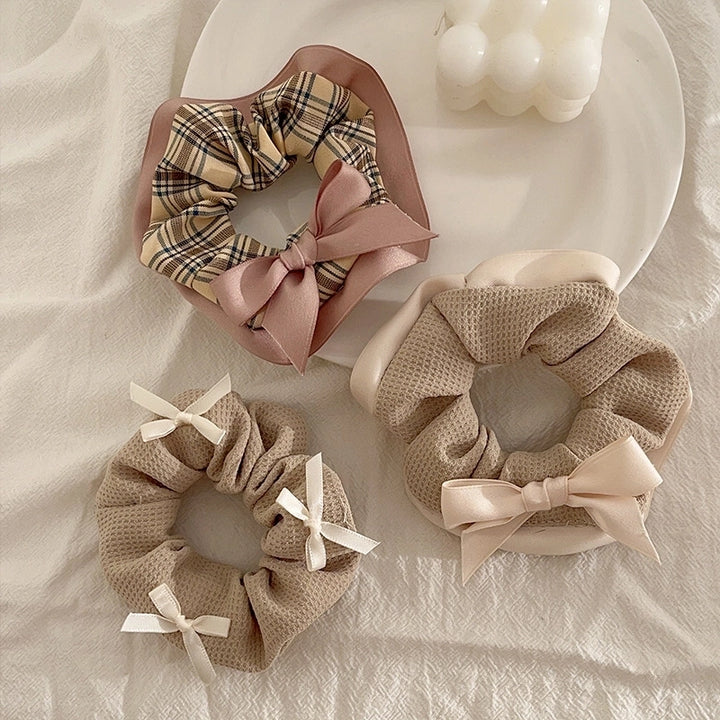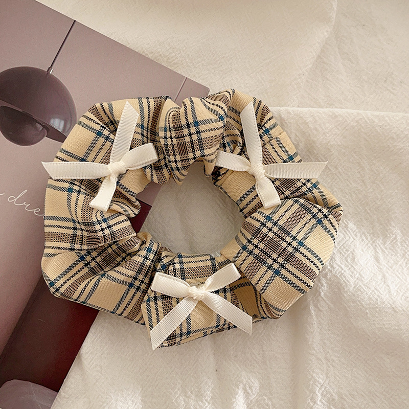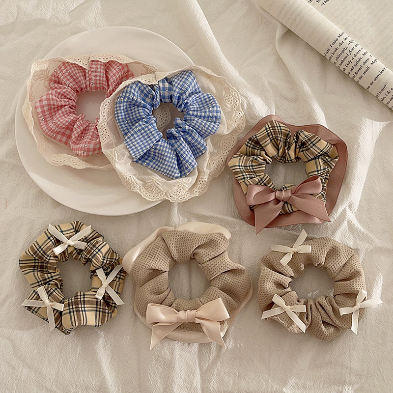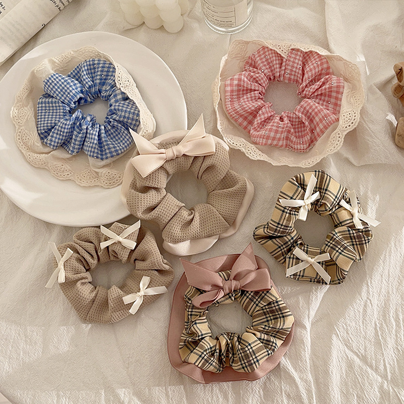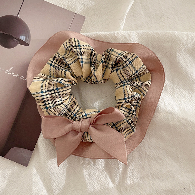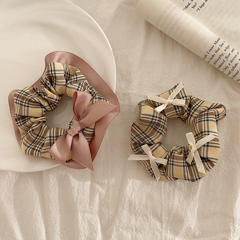 Women'S Ig Style Sweet Plaid Bow Knot Cloth Rib-Knit Lace Rivet Hair Tie