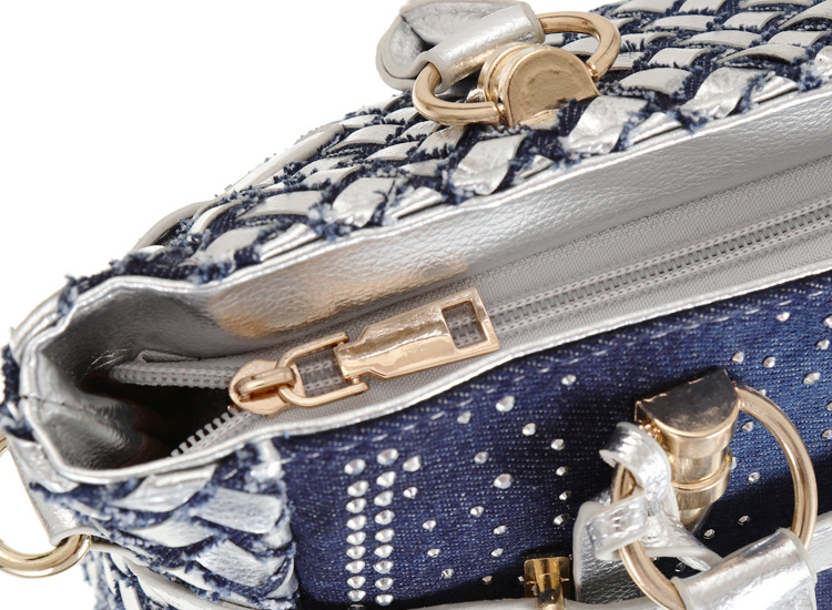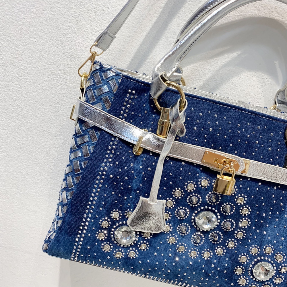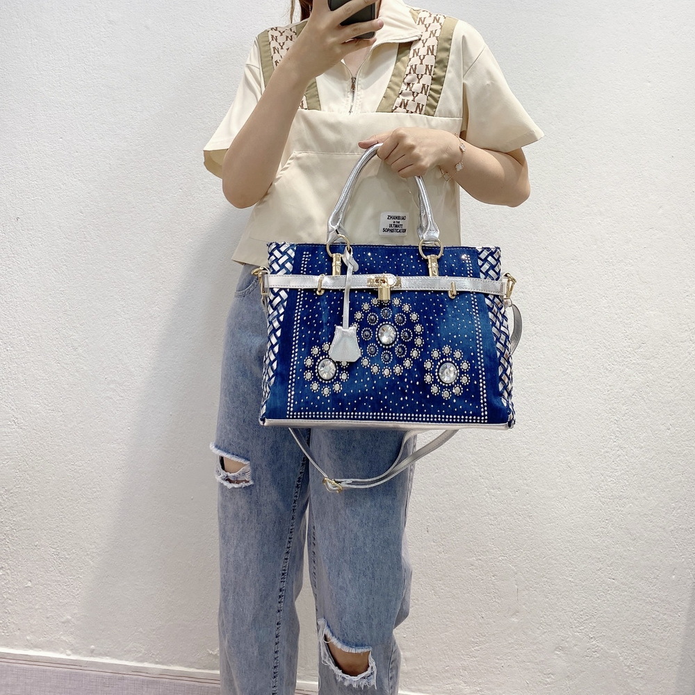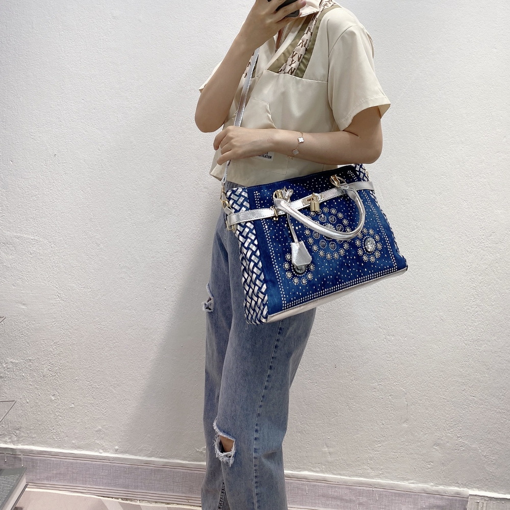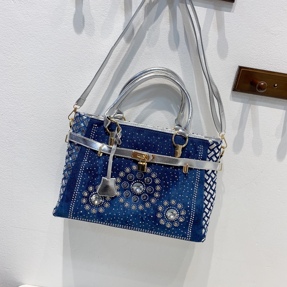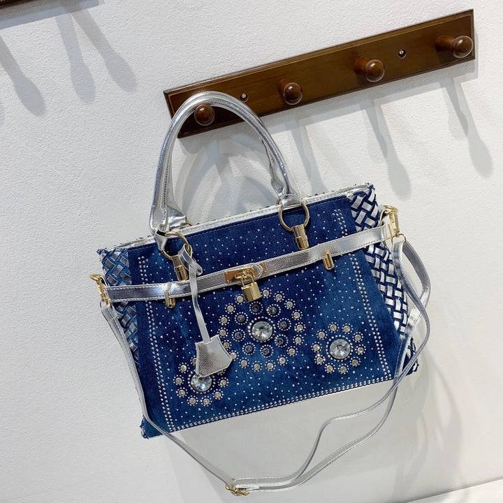 Women'S Medium Denim Geometric Streetwear Lock Square Zipper Tote Bag