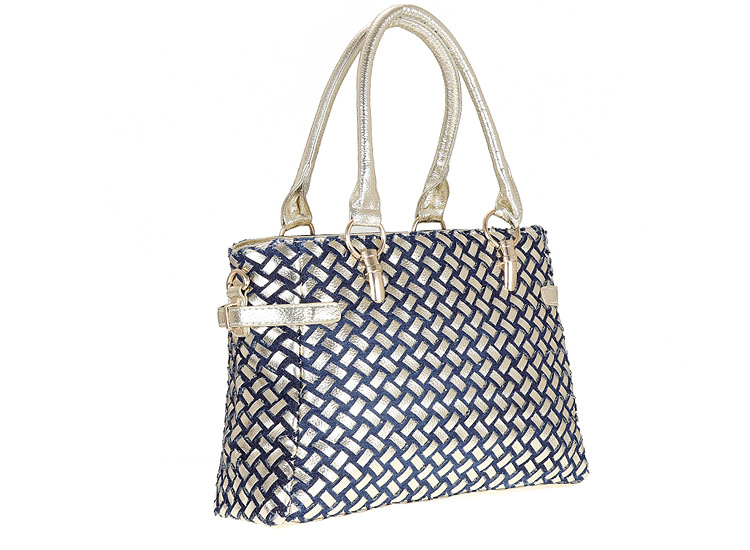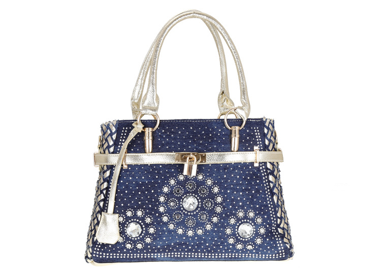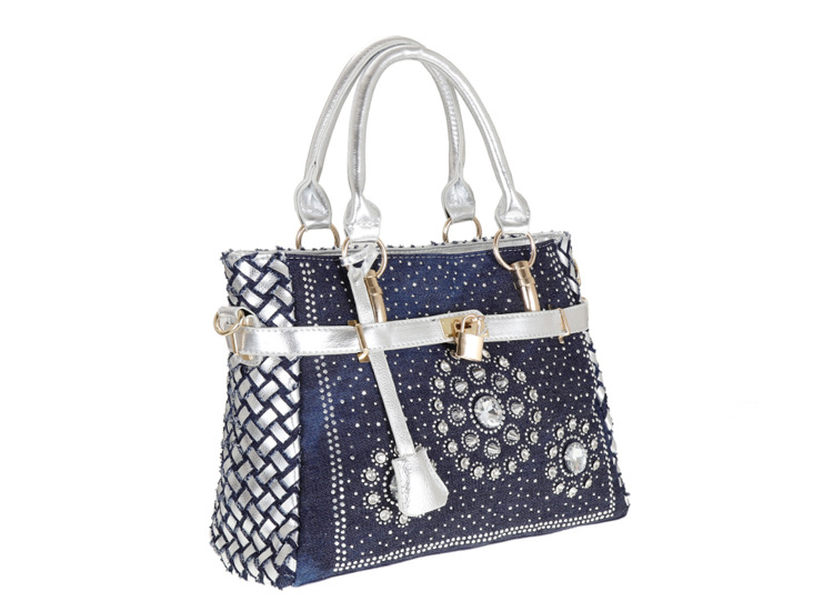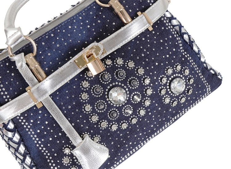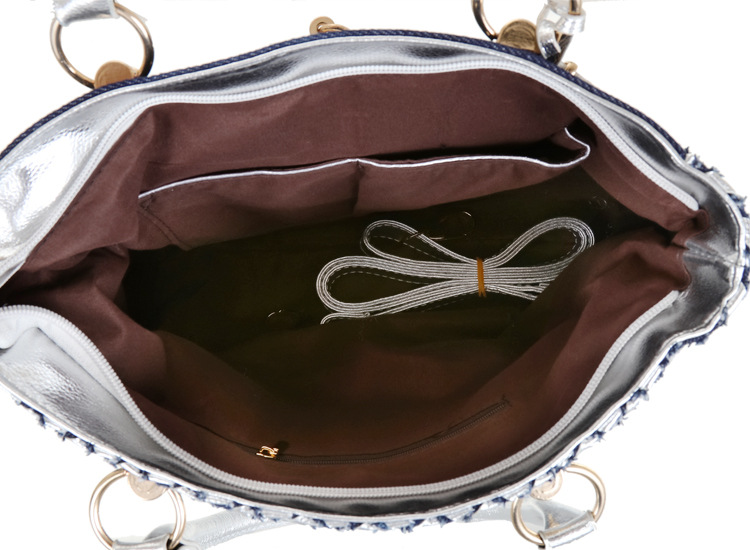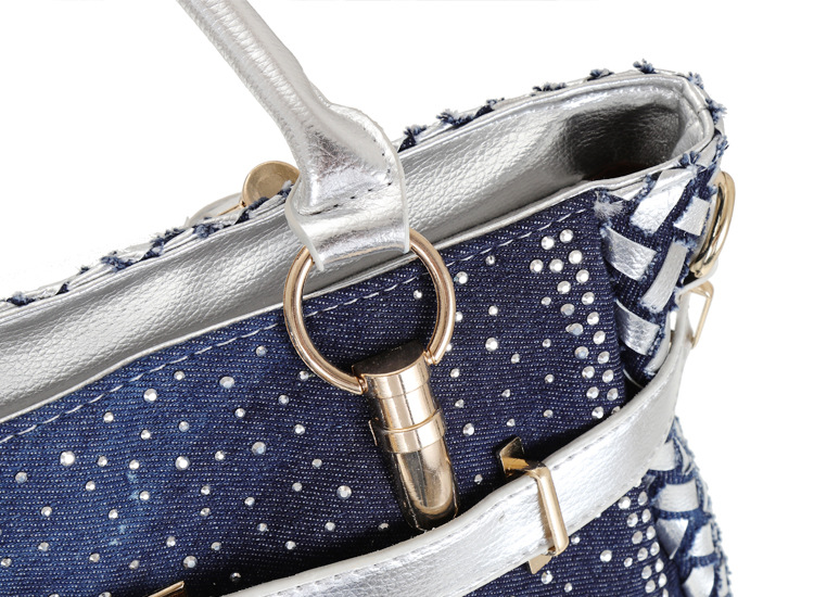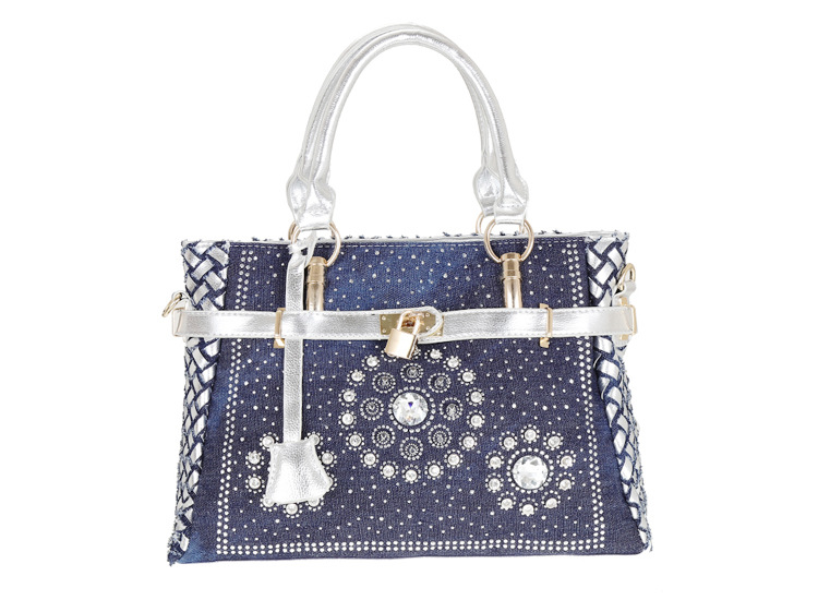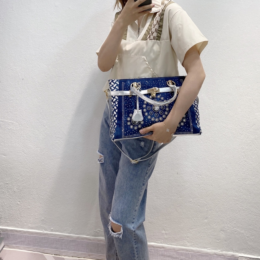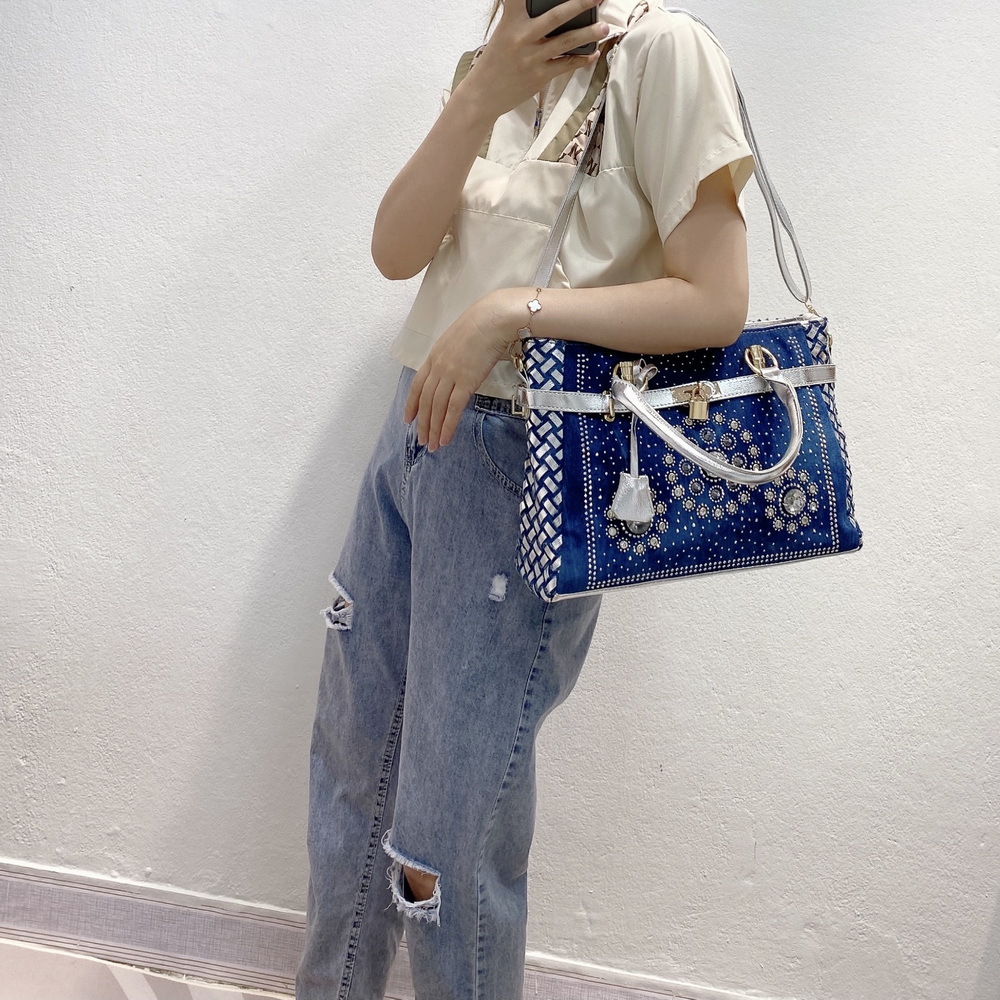 Women'S Medium Denim Geometric Streetwear Lock Square Zipper Tote Bag