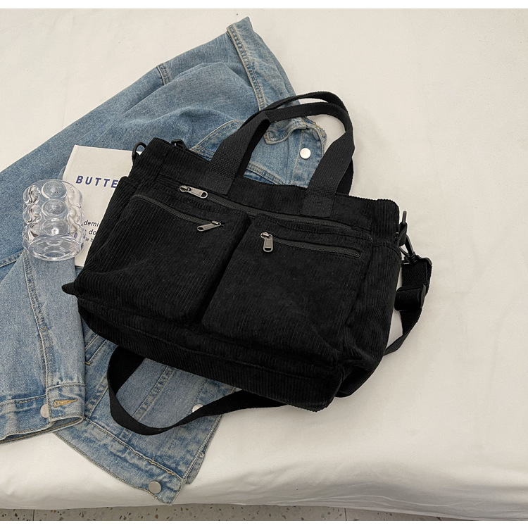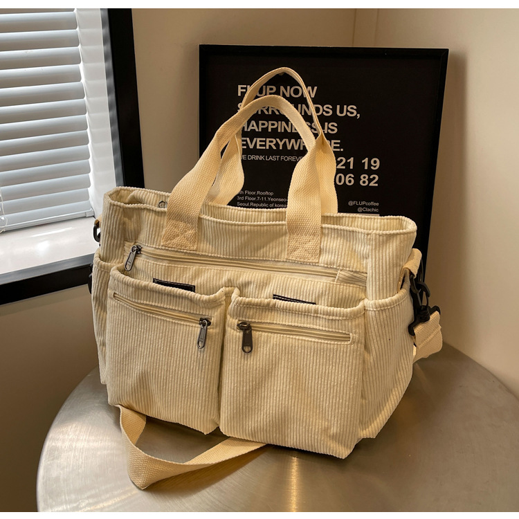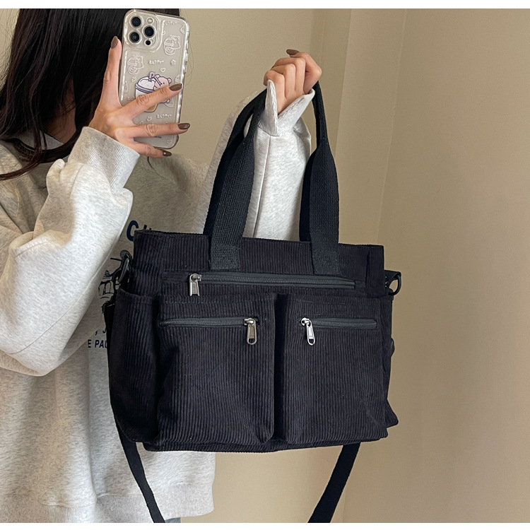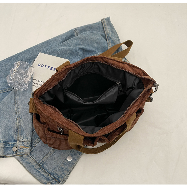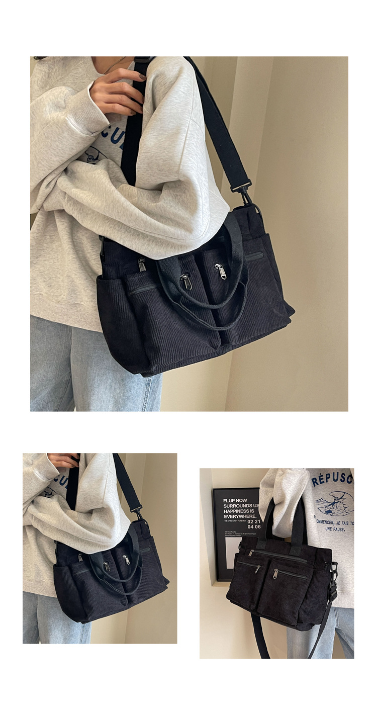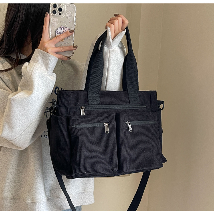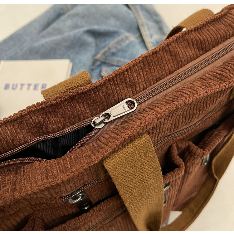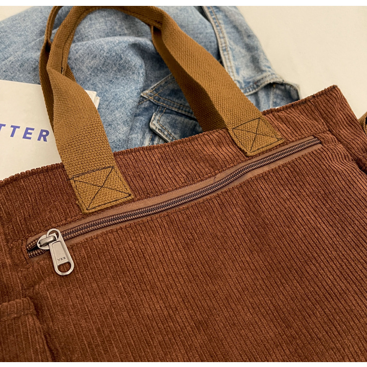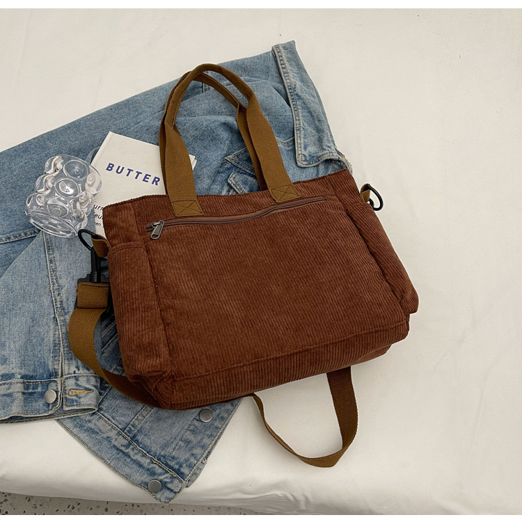 Women'S Medium Flannel Solid Color Streetwear Sewing Thread Square Zipper Tote Bag