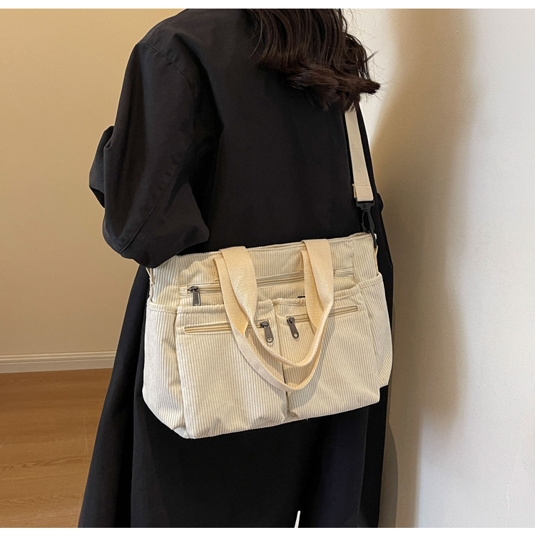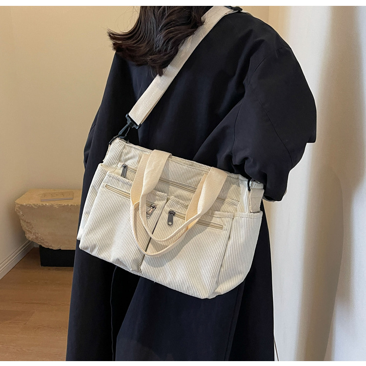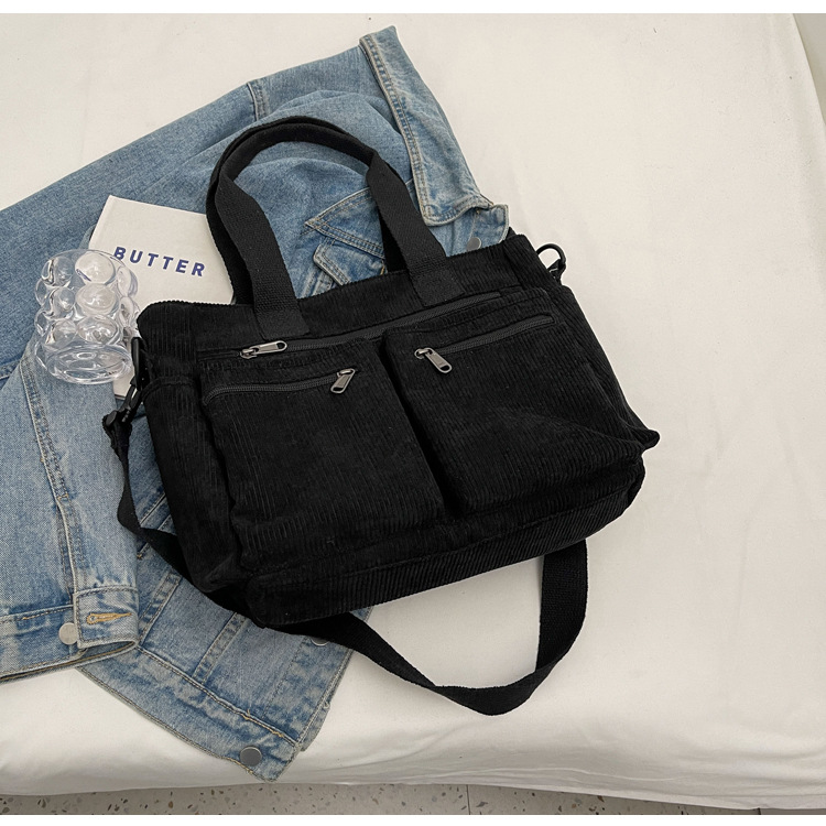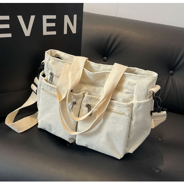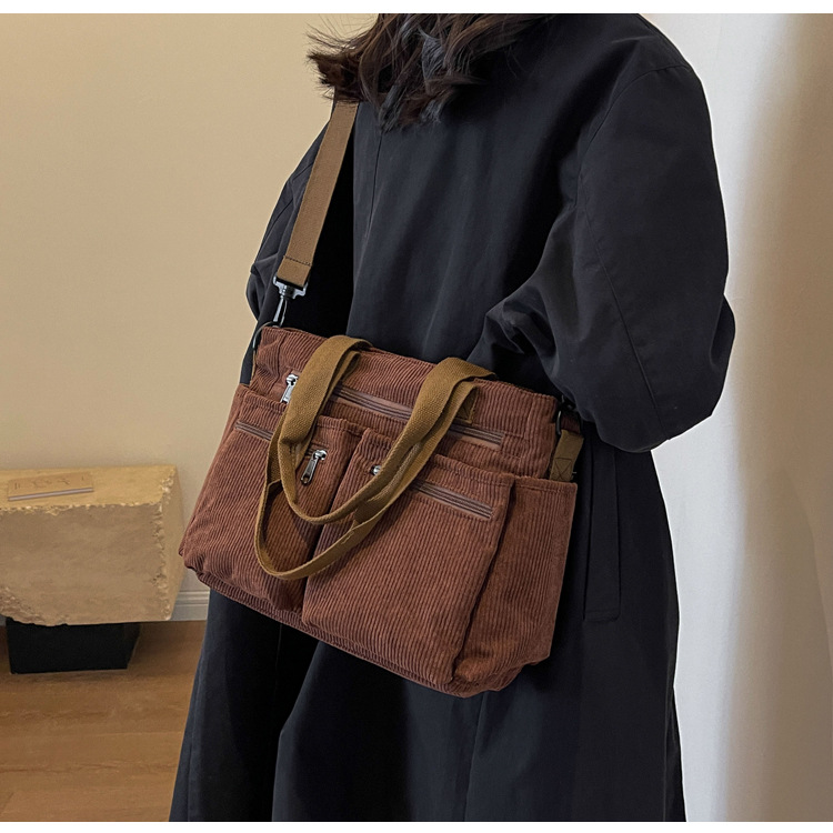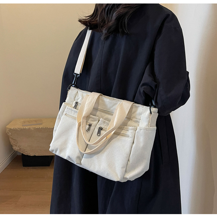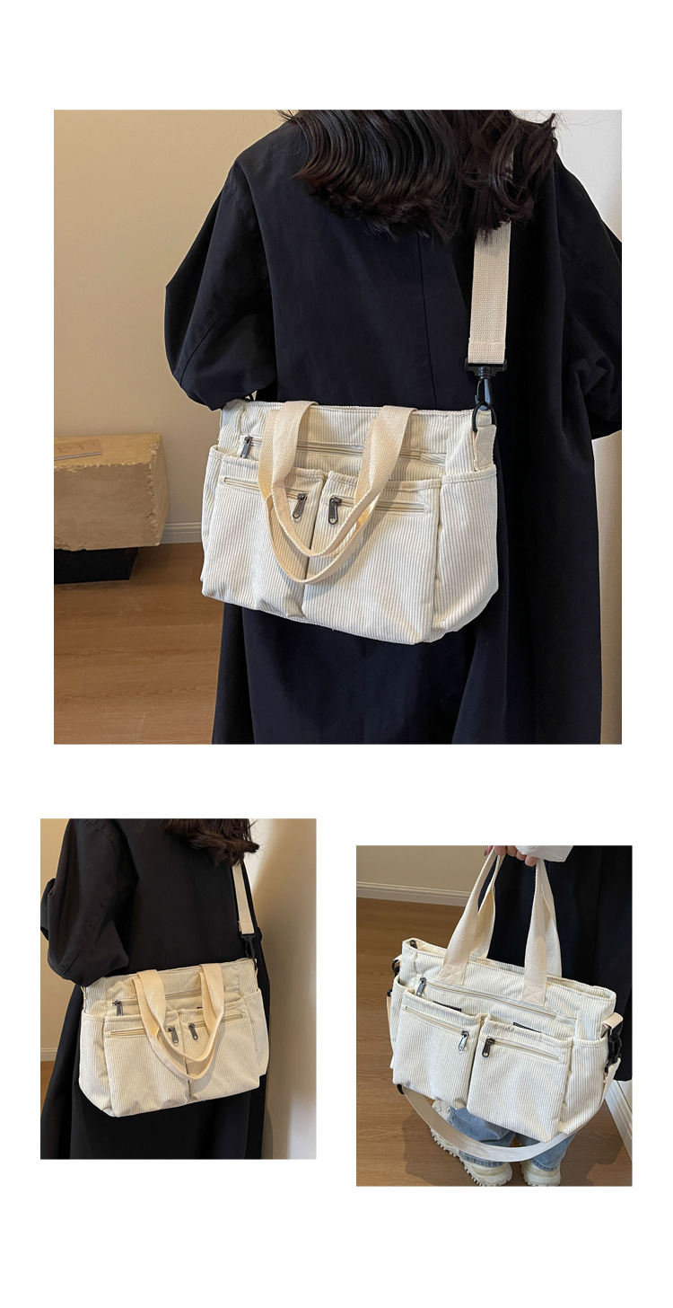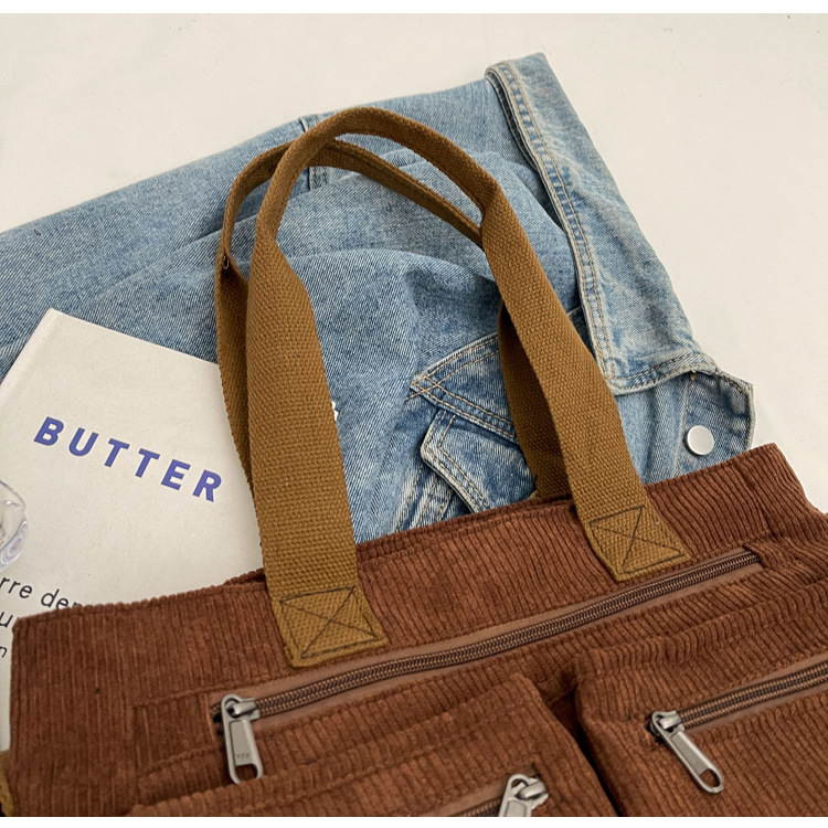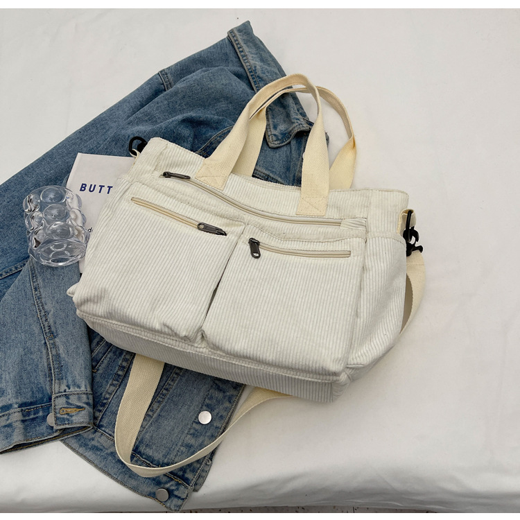Women'S Medium Flannel Solid Color Streetwear Sewing Thread Square Zipper Tote Bag