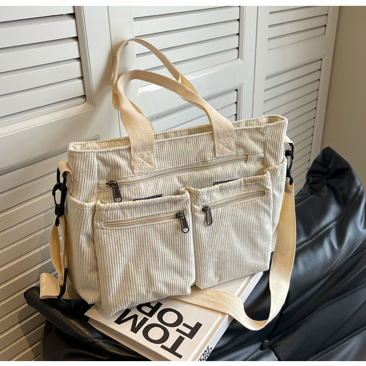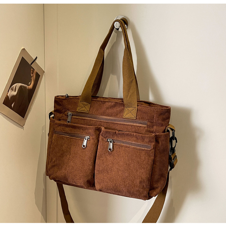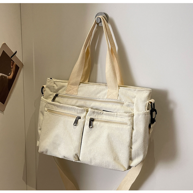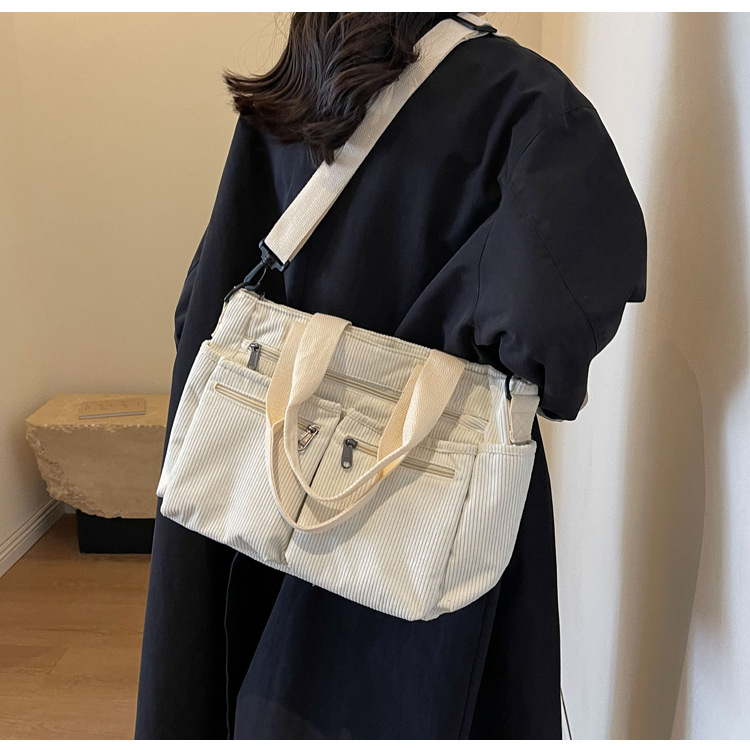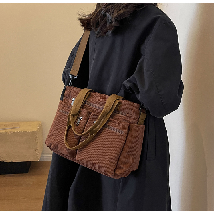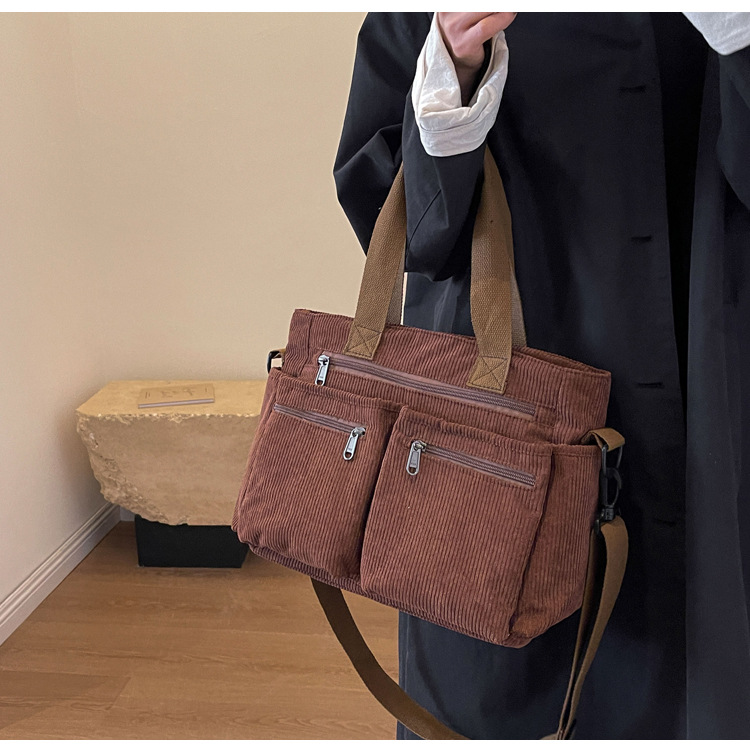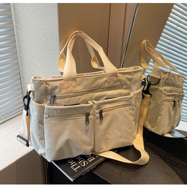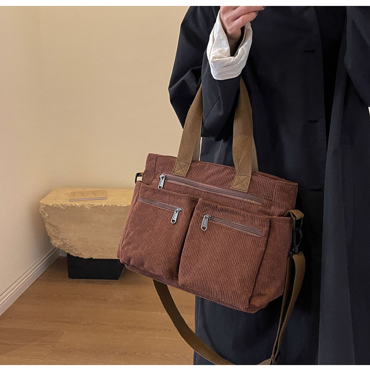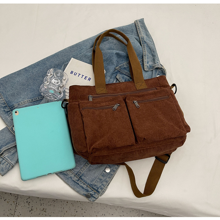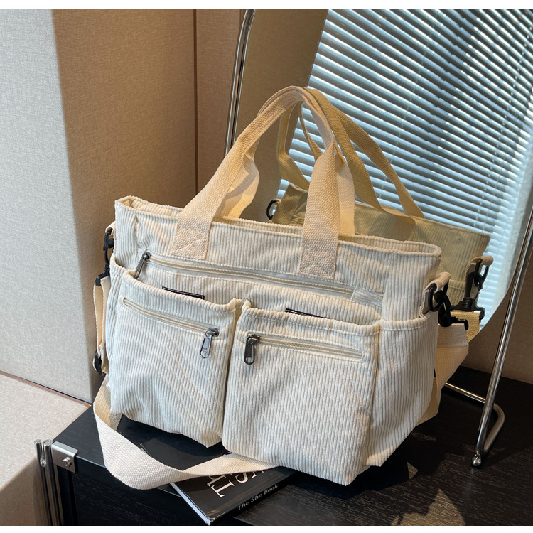 Women'S Medium Flannel Solid Color Streetwear Sewing Thread Square Zipper Tote Bag