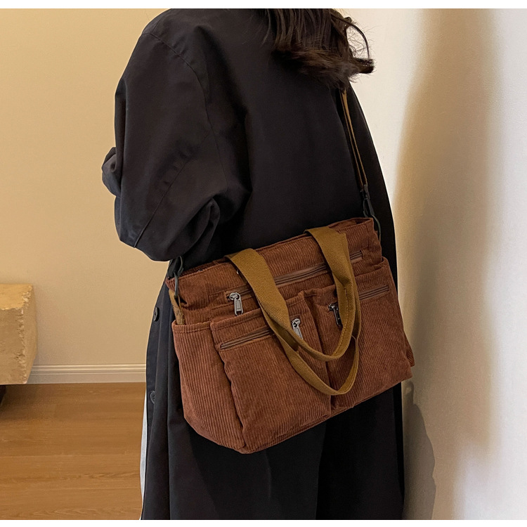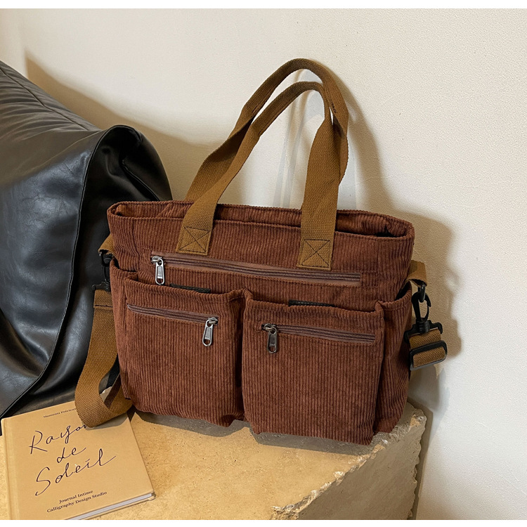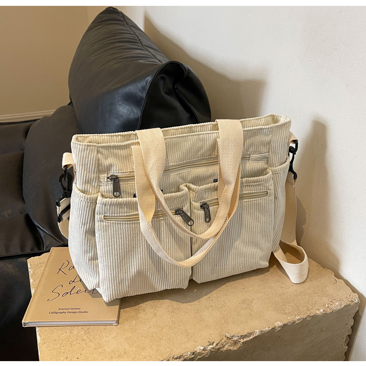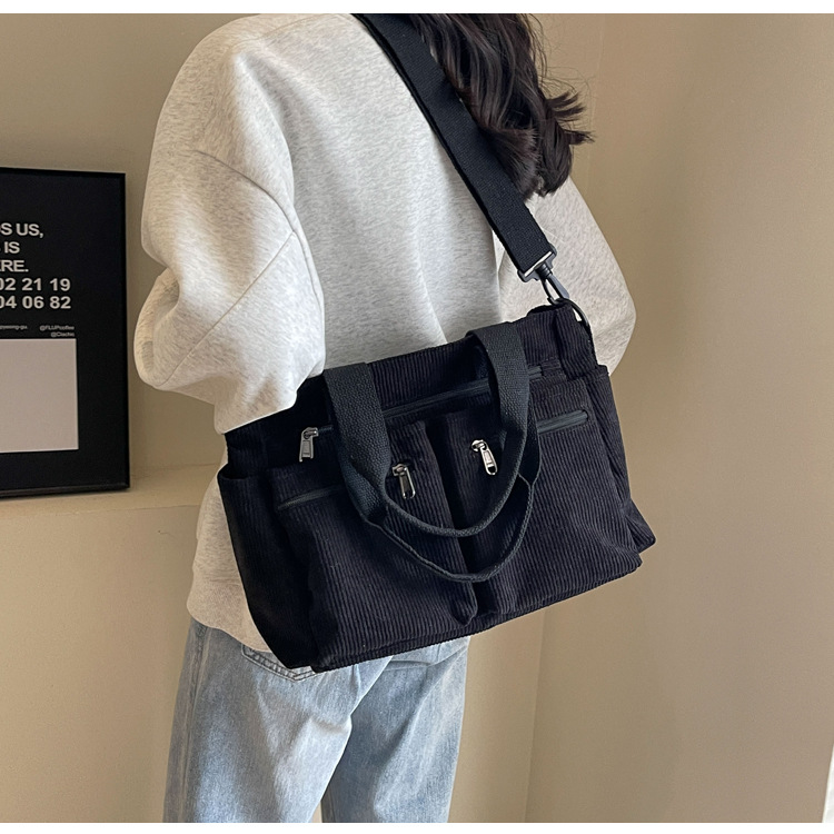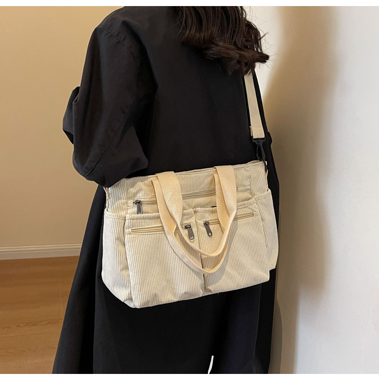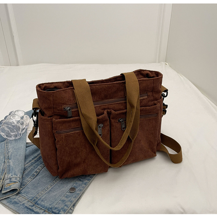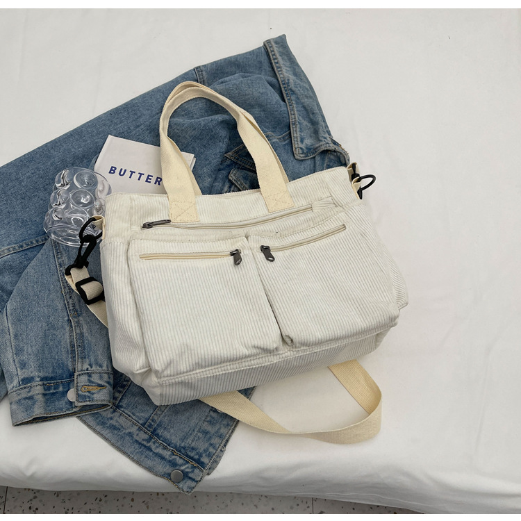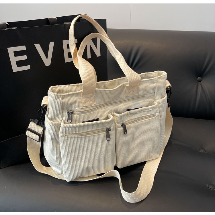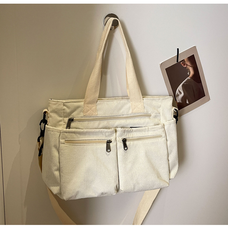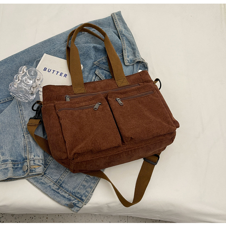 Women'S Medium Flannel Solid Color Streetwear Sewing Thread Square Zipper Tote Bag