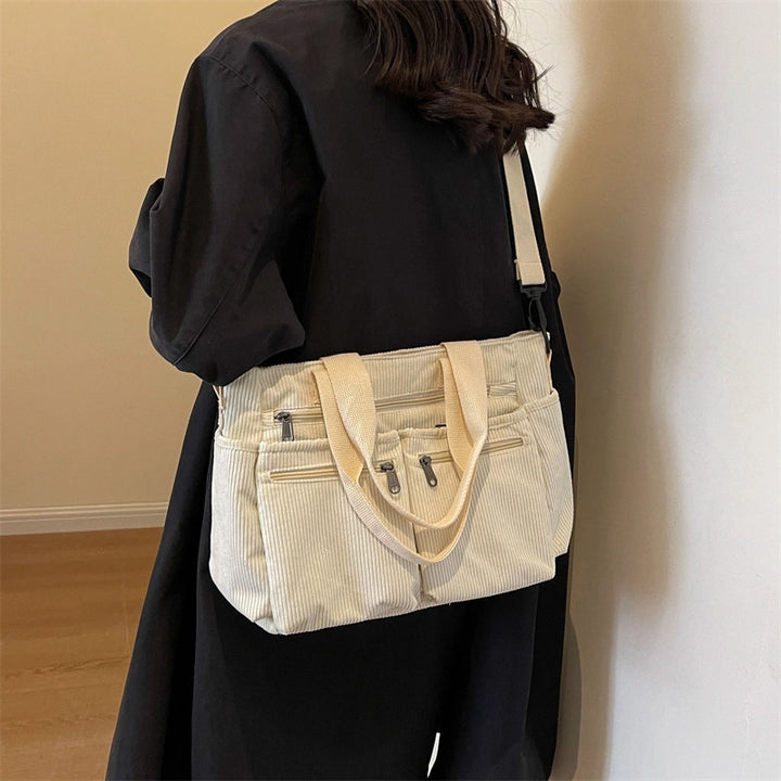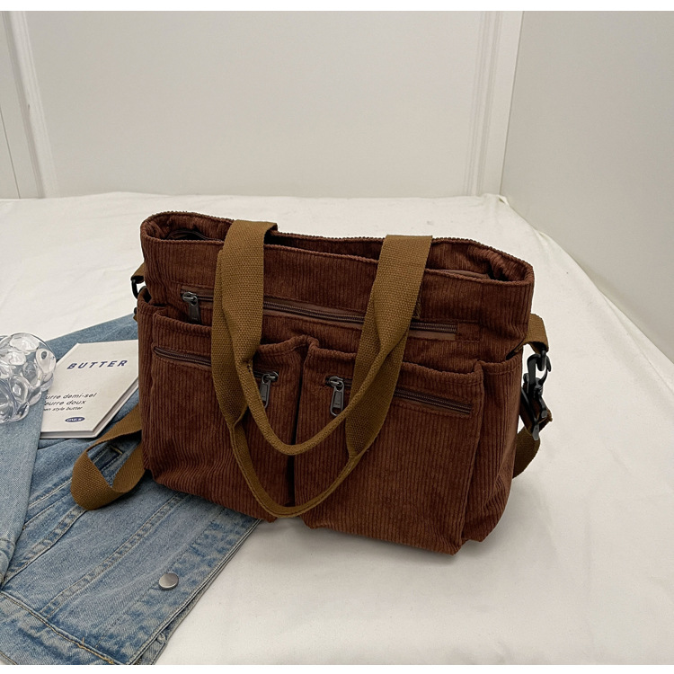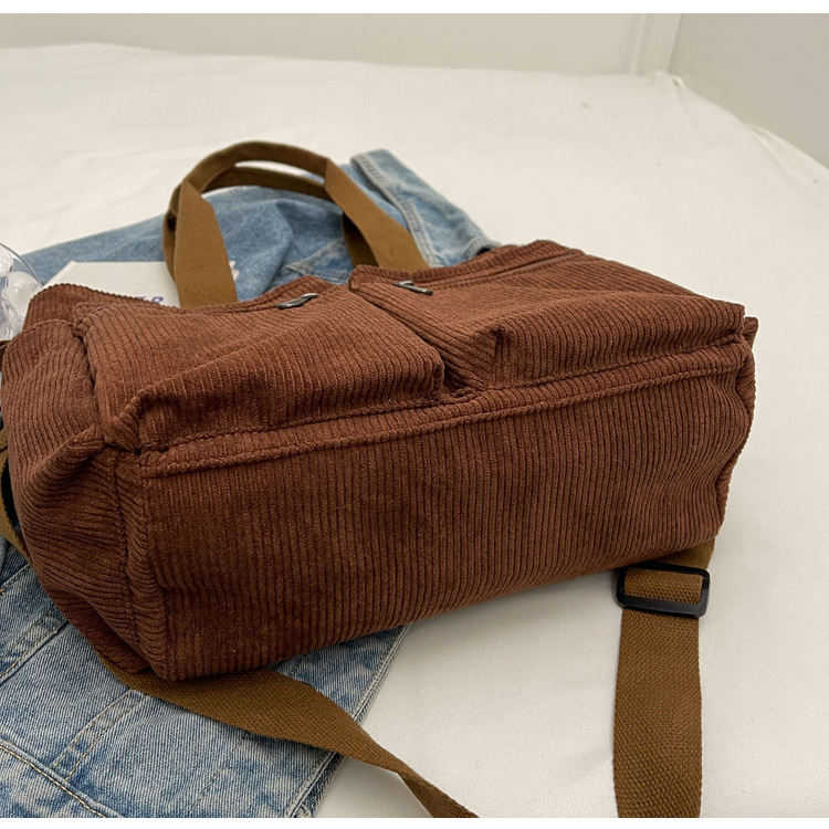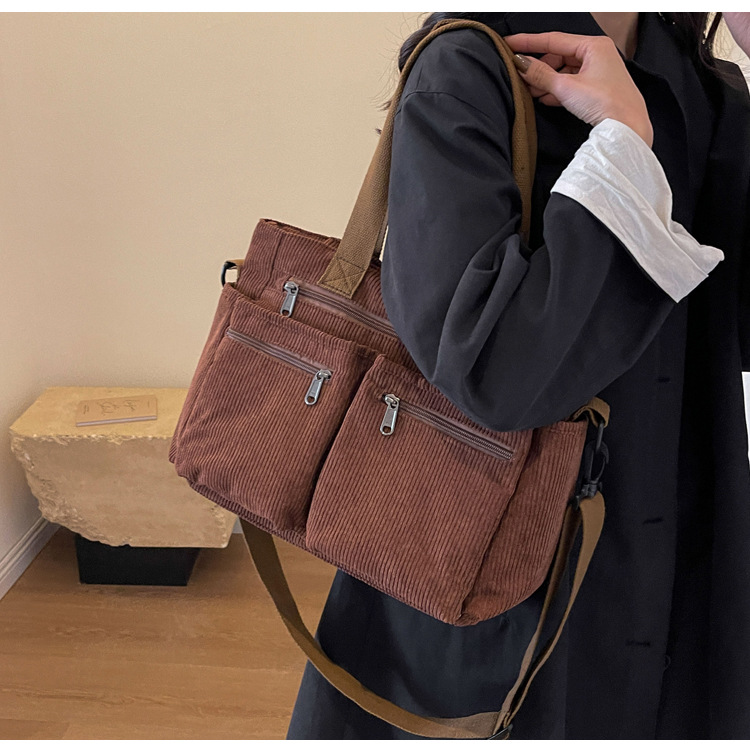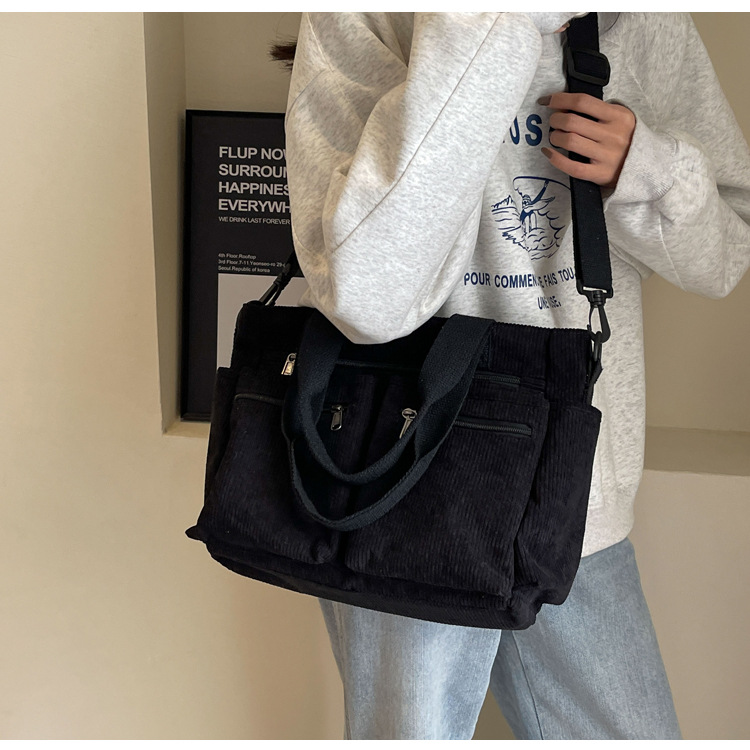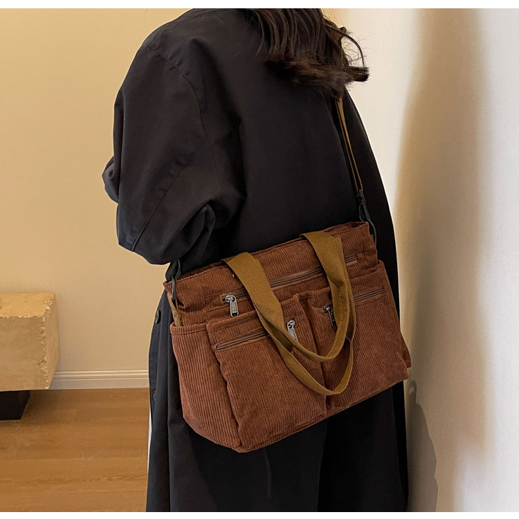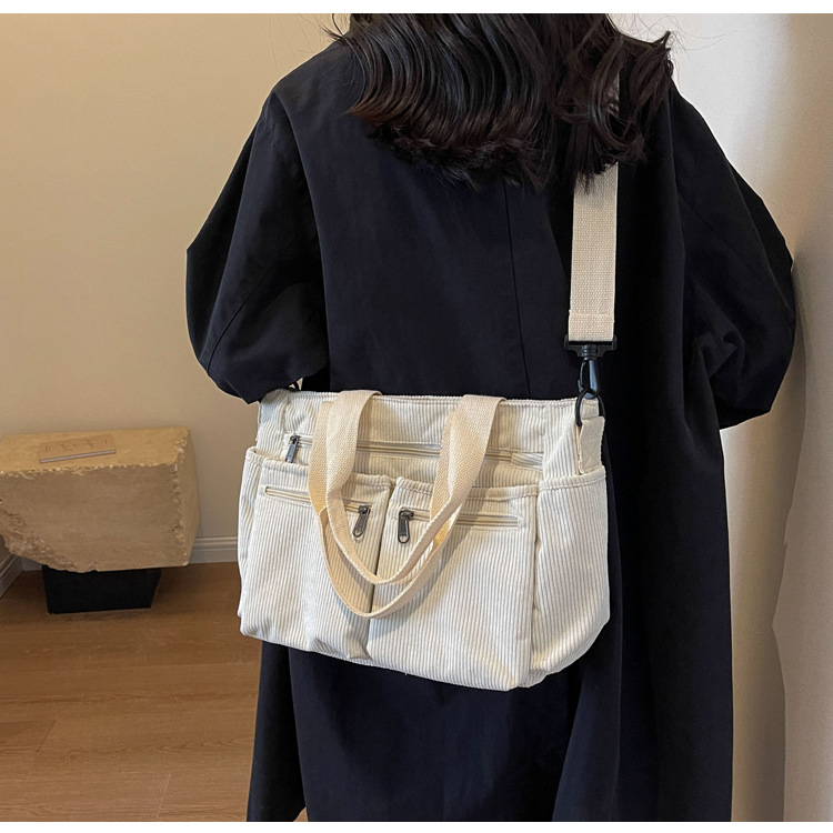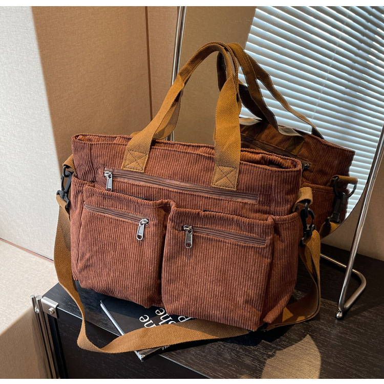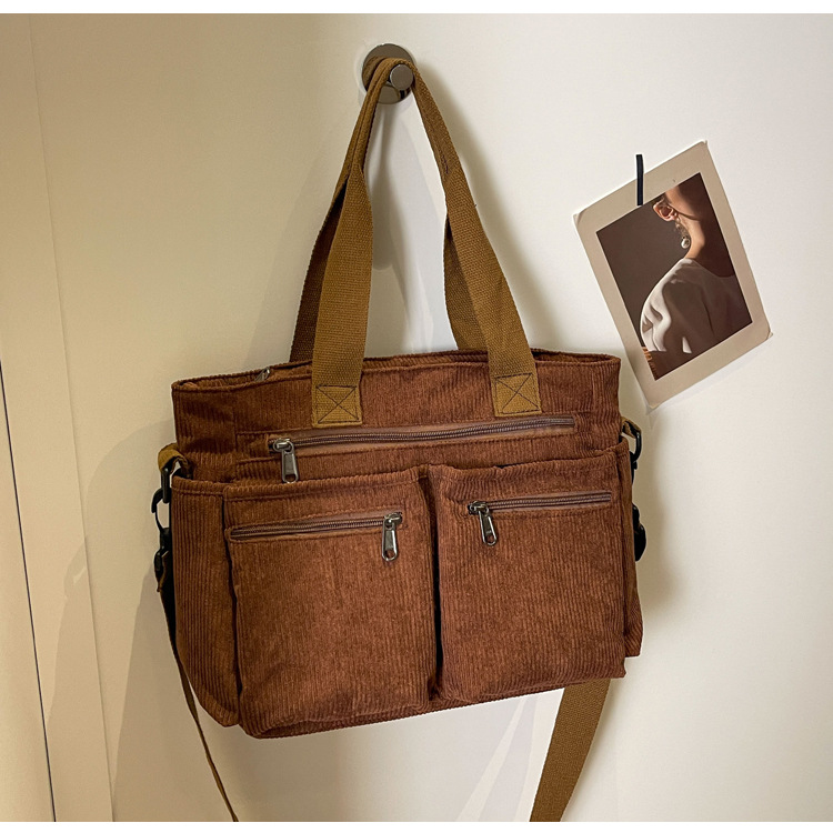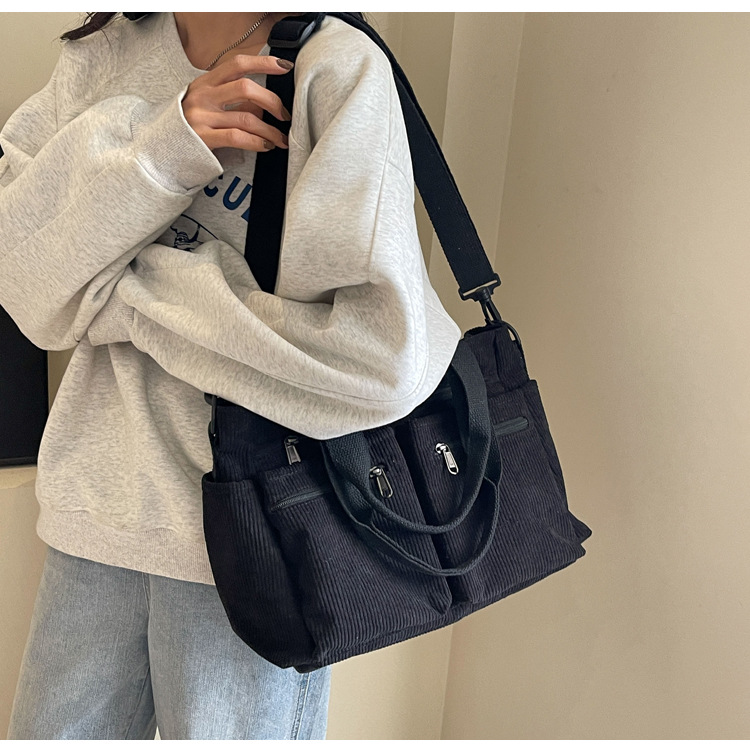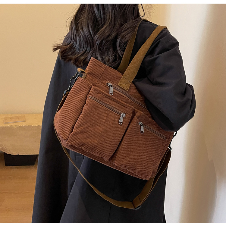 Women'S Medium Flannel Solid Color Streetwear Sewing Thread Square Zipper Tote Bag