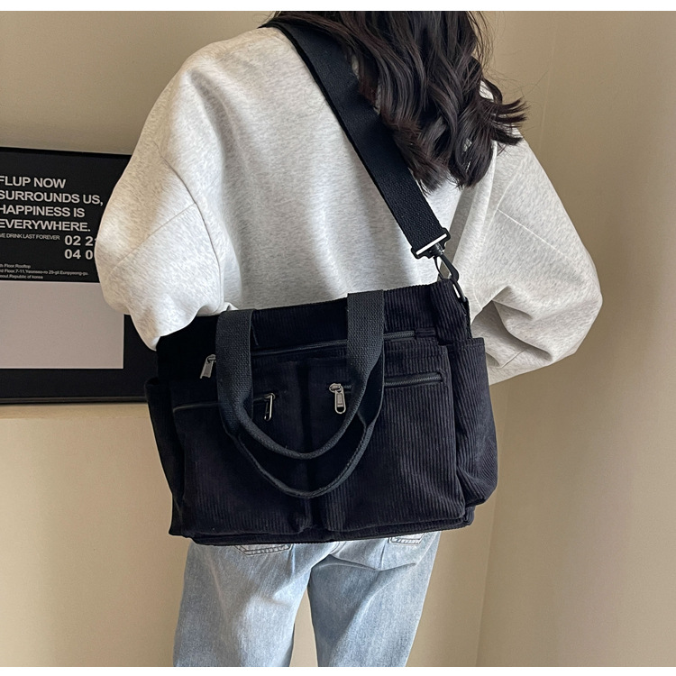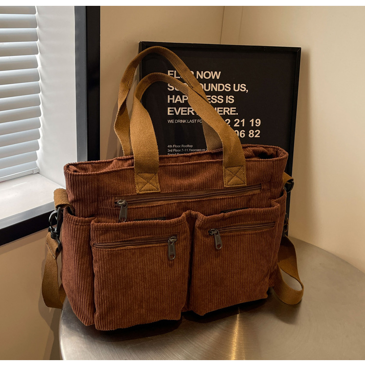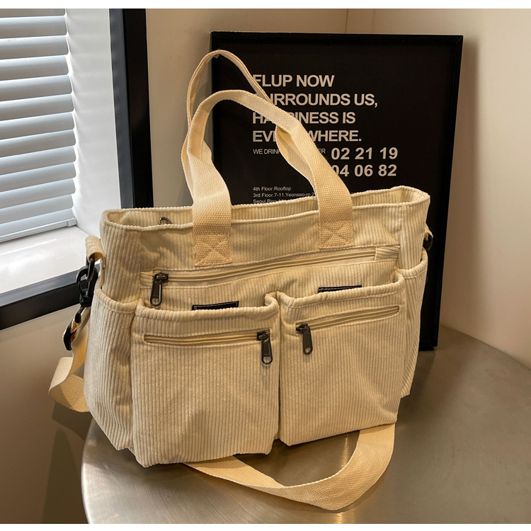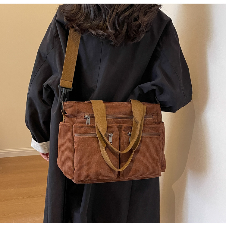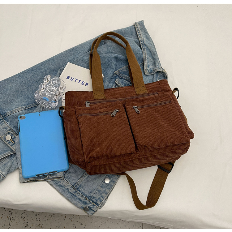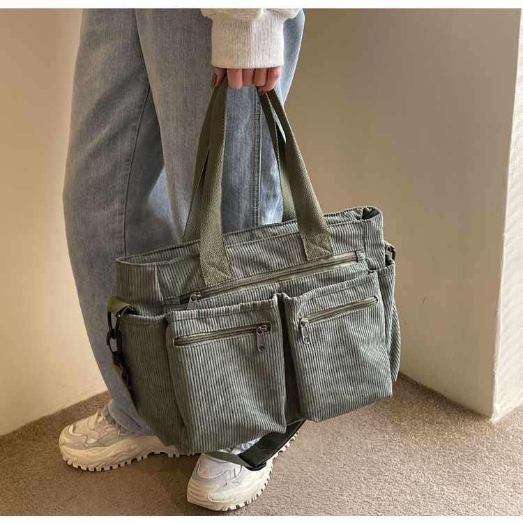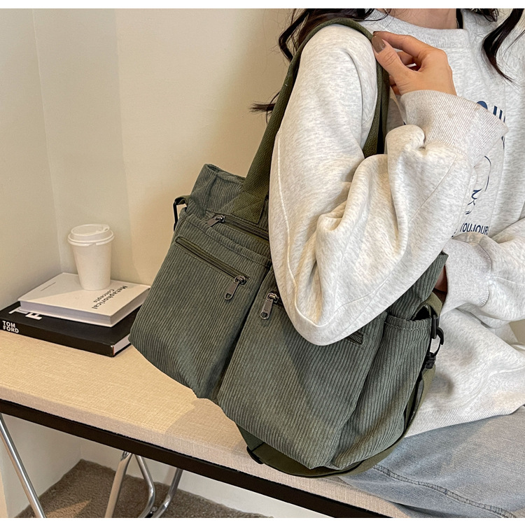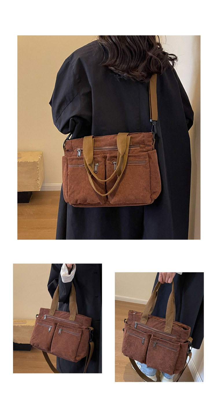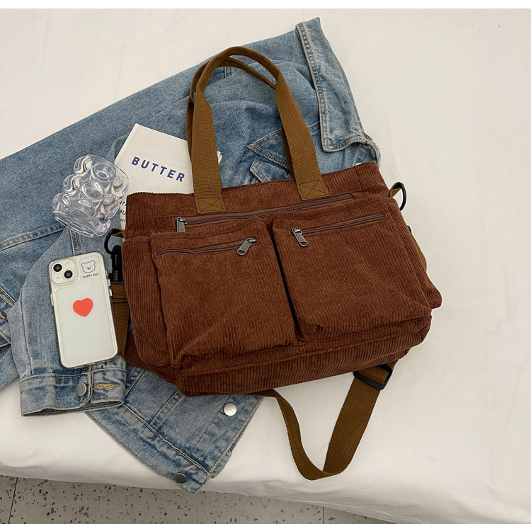 Women'S Medium Flannel Solid Color Streetwear Sewing Thread Square Zipper Tote Bag