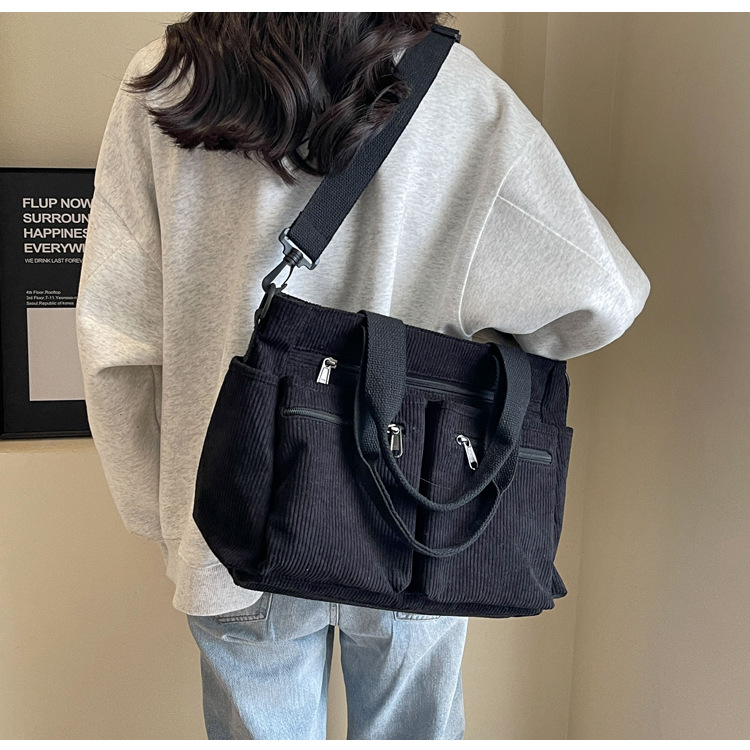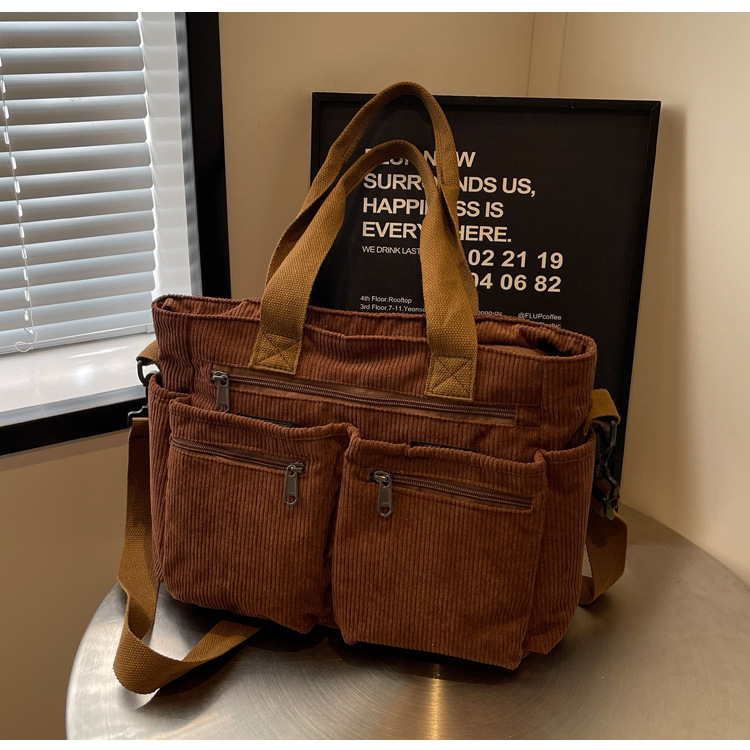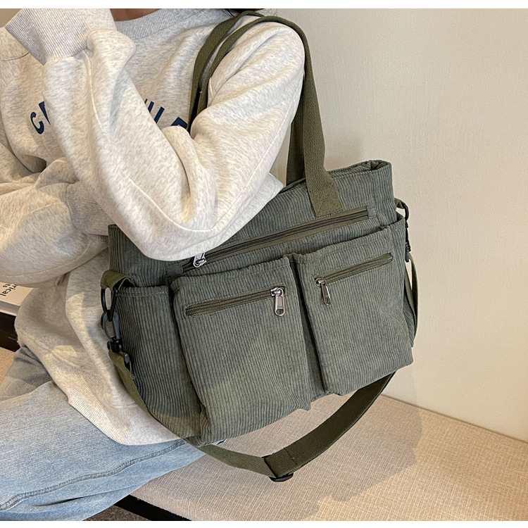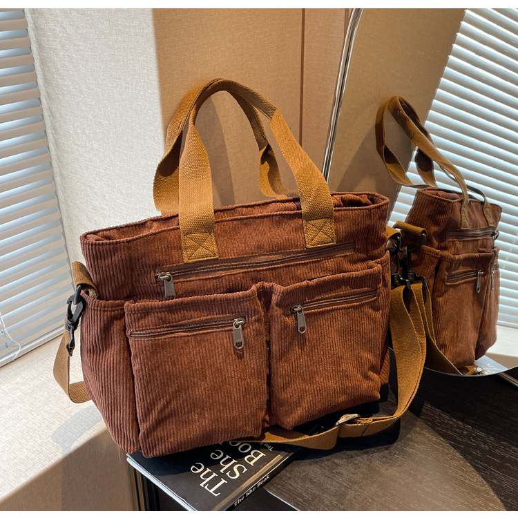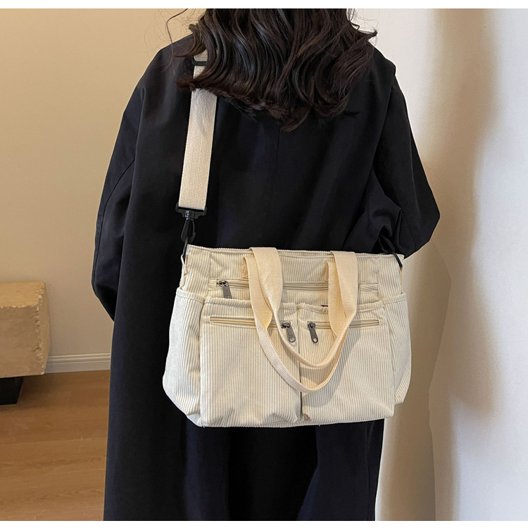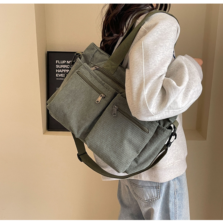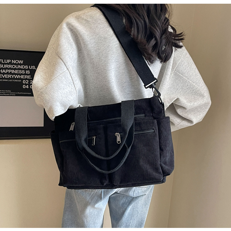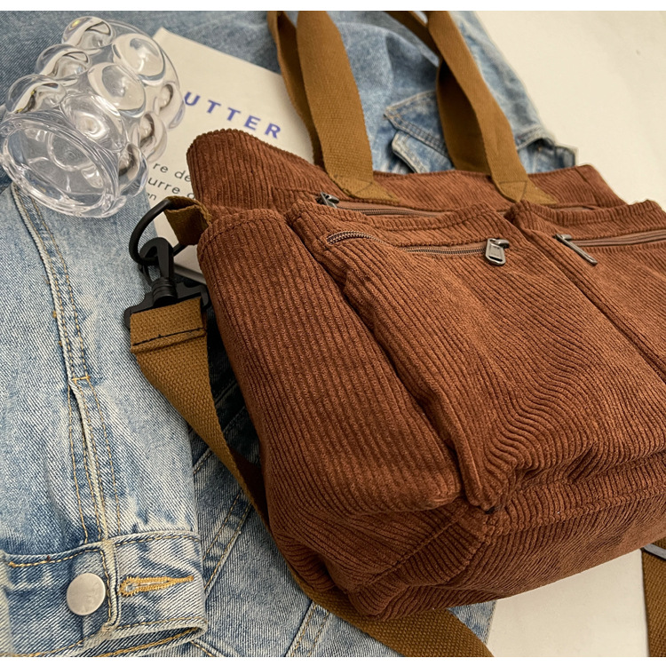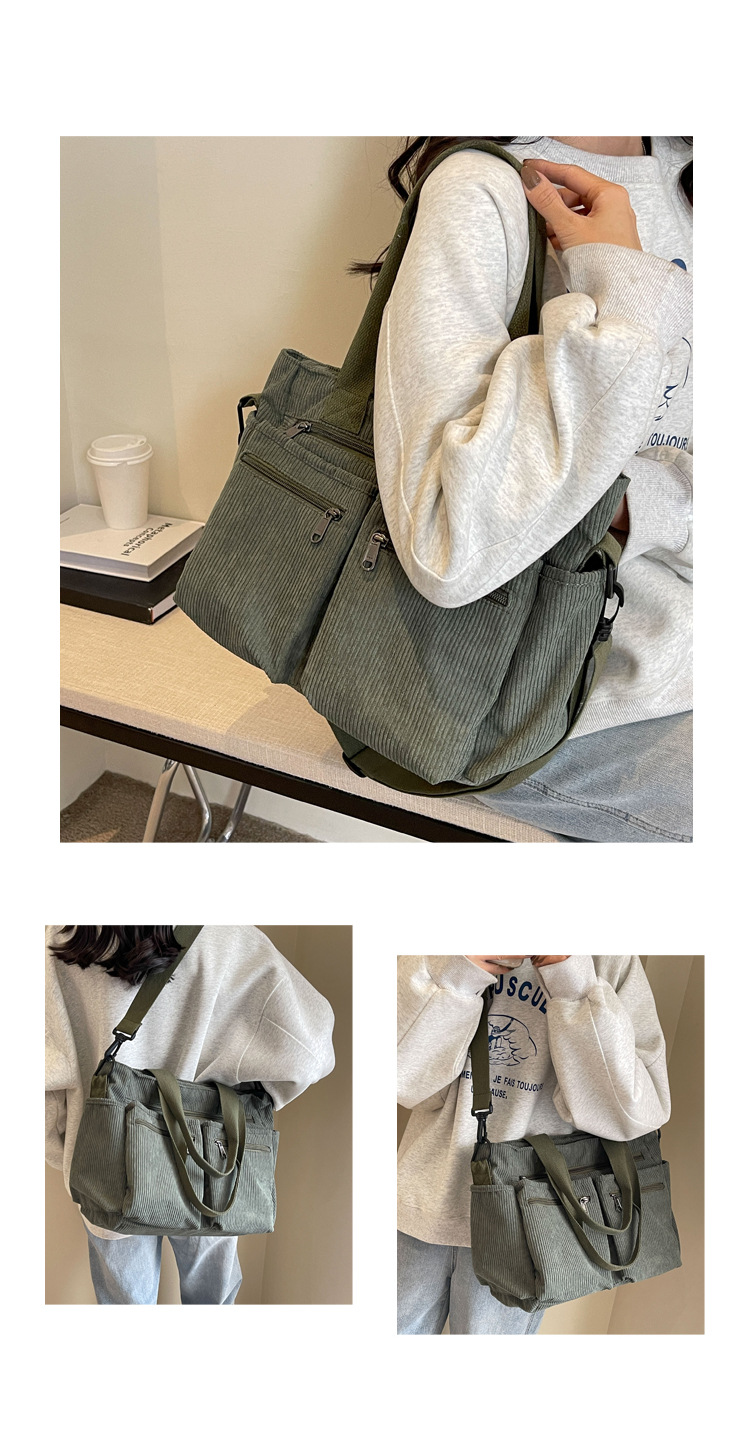 Women'S Medium Flannel Solid Color Streetwear Sewing Thread Square Zipper Tote Bag