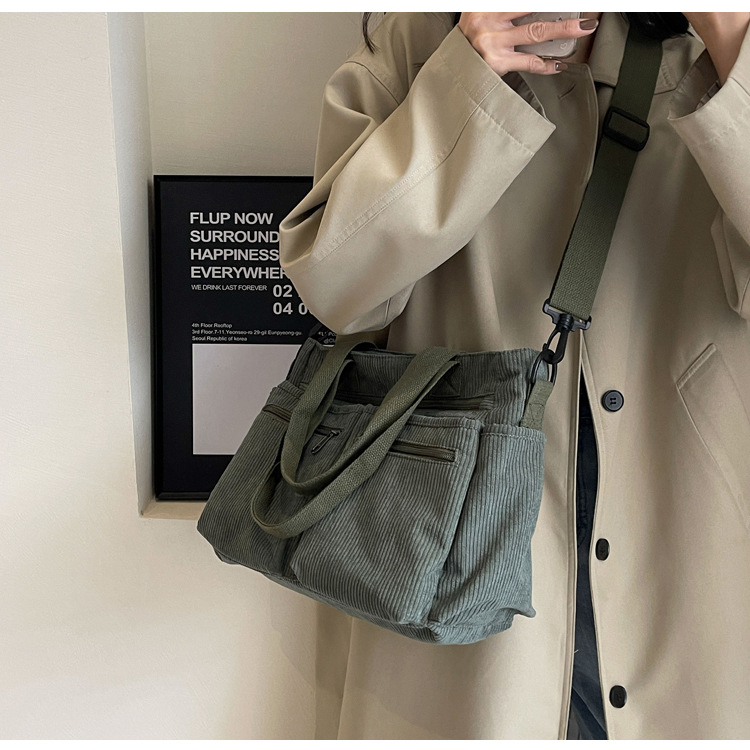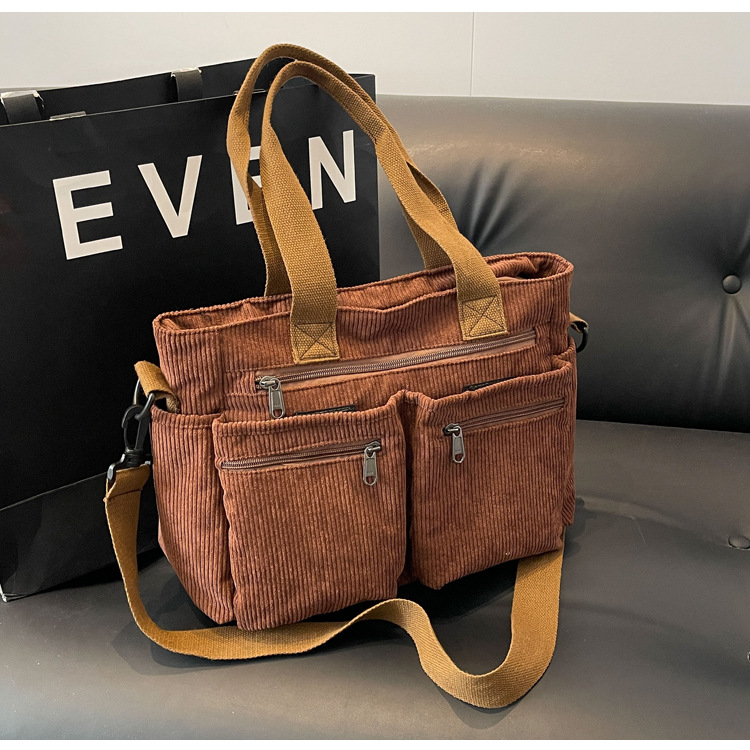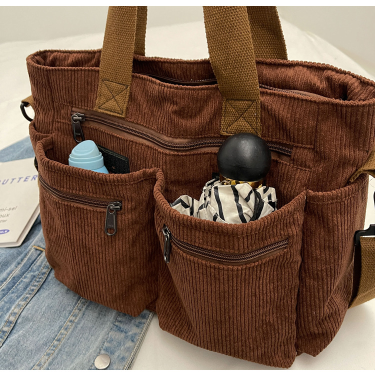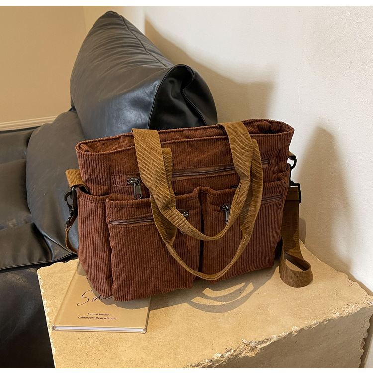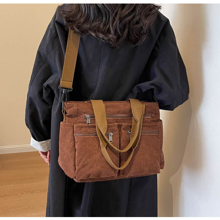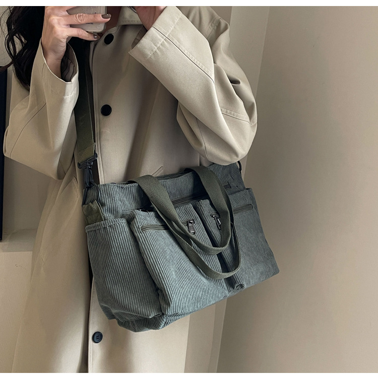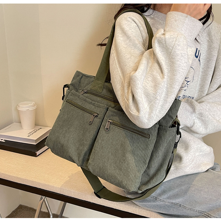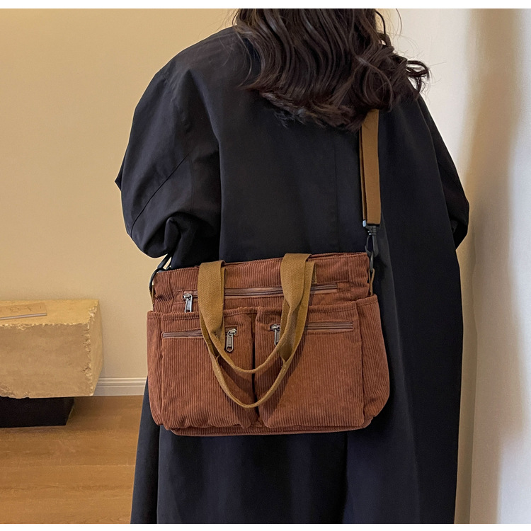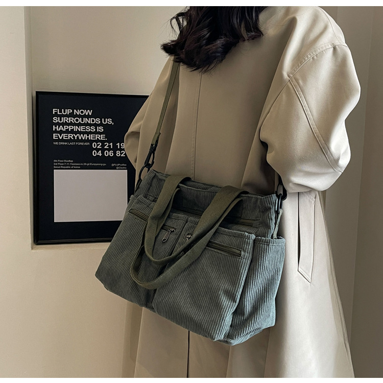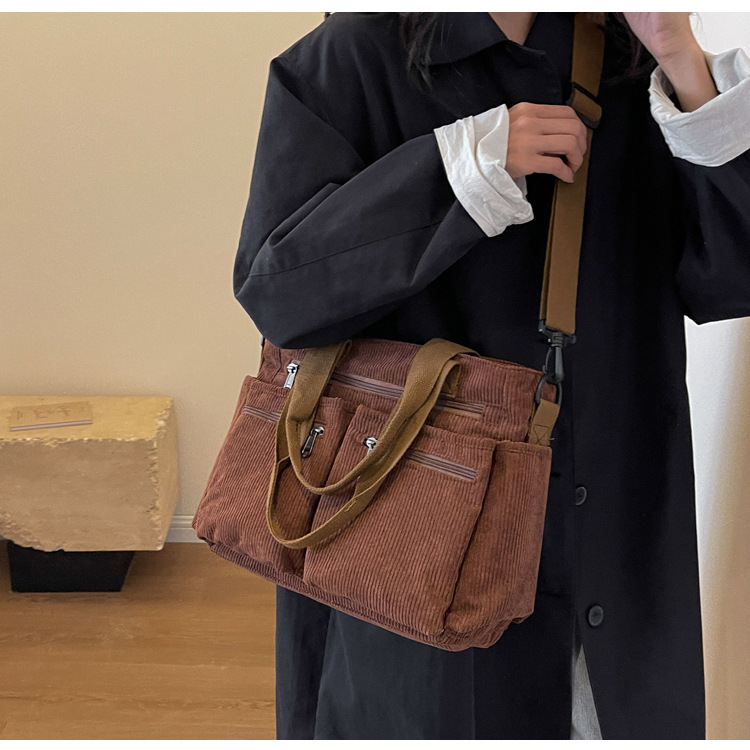 Women'S Medium Flannel Solid Color Streetwear Sewing Thread Square Zipper Tote Bag