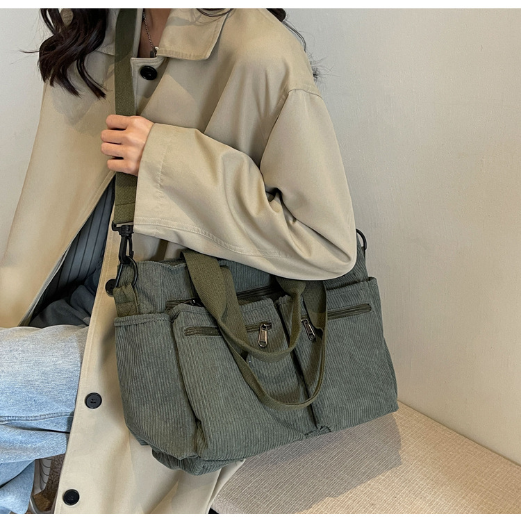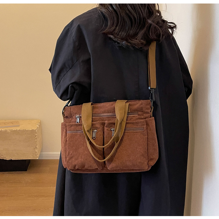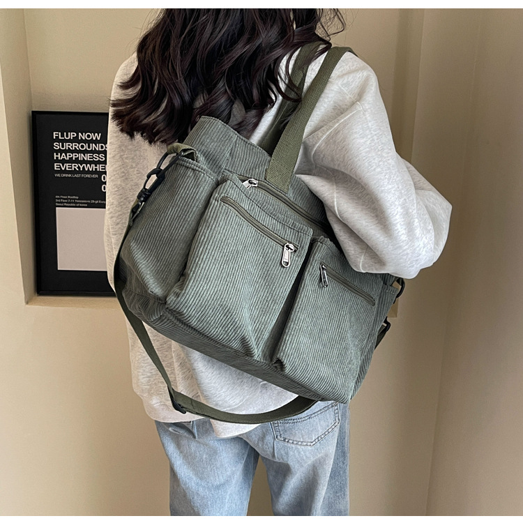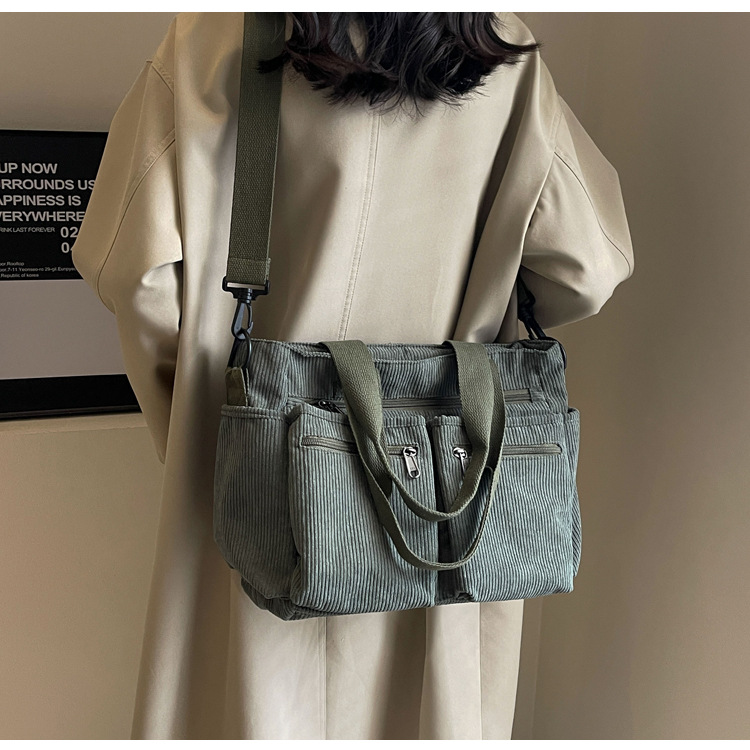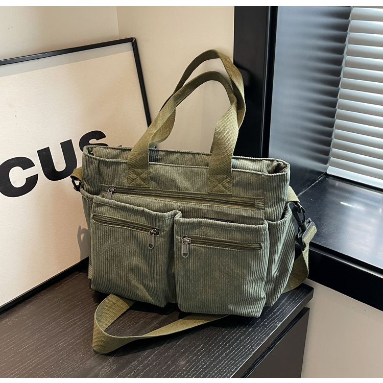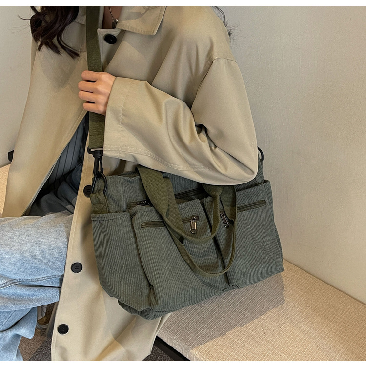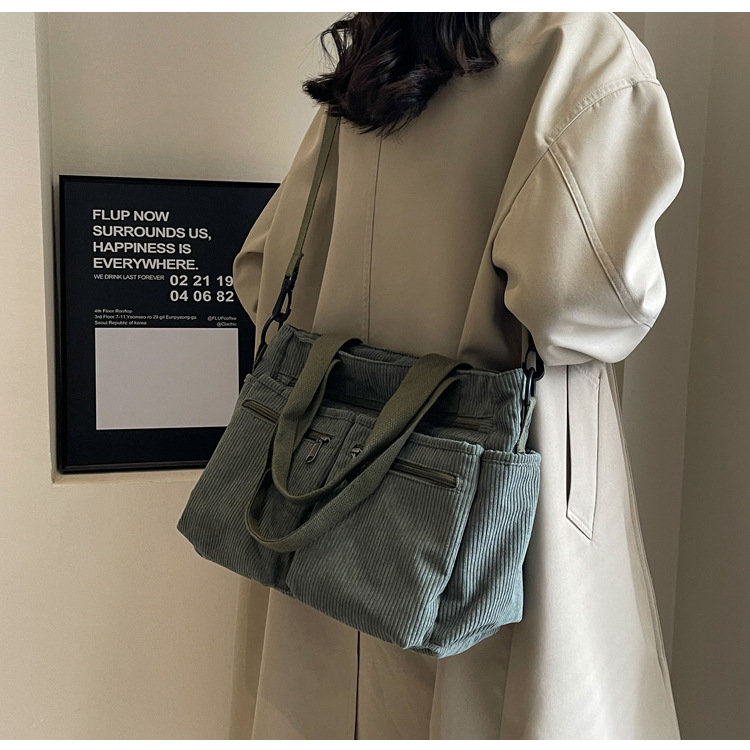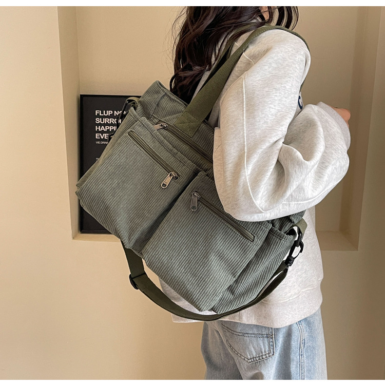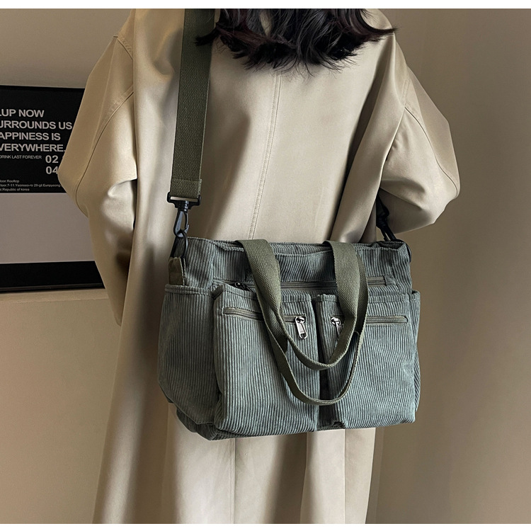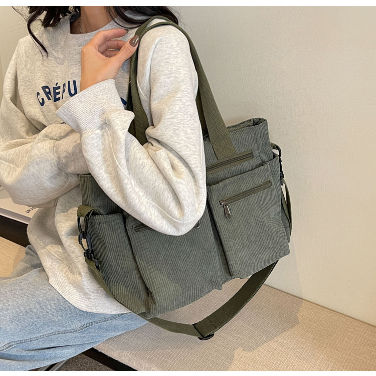 Women'S Medium Flannel Solid Color Streetwear Sewing Thread Square Zipper Tote Bag