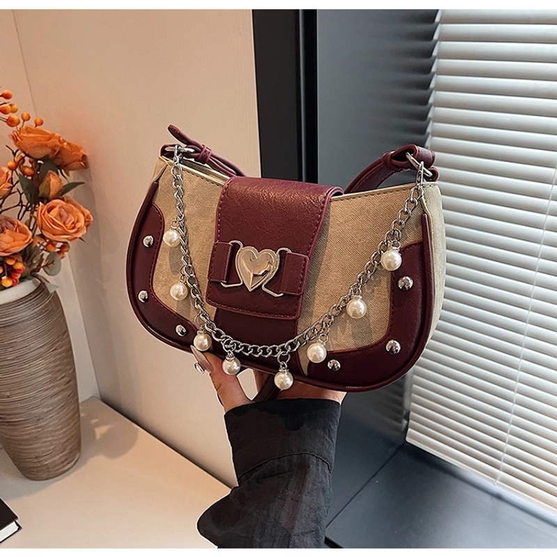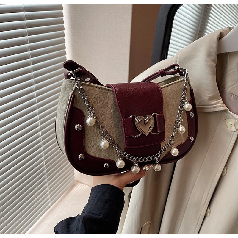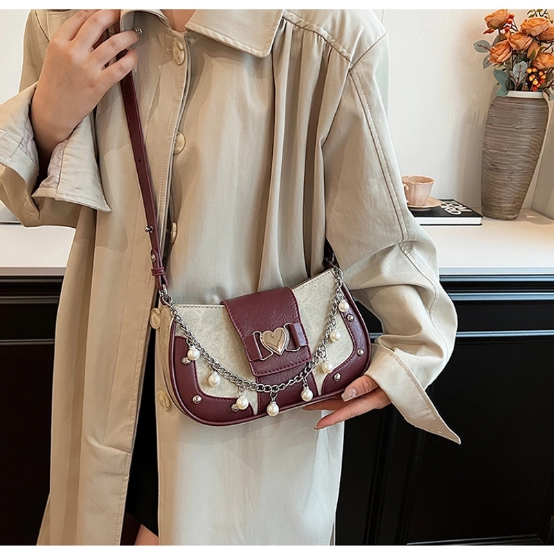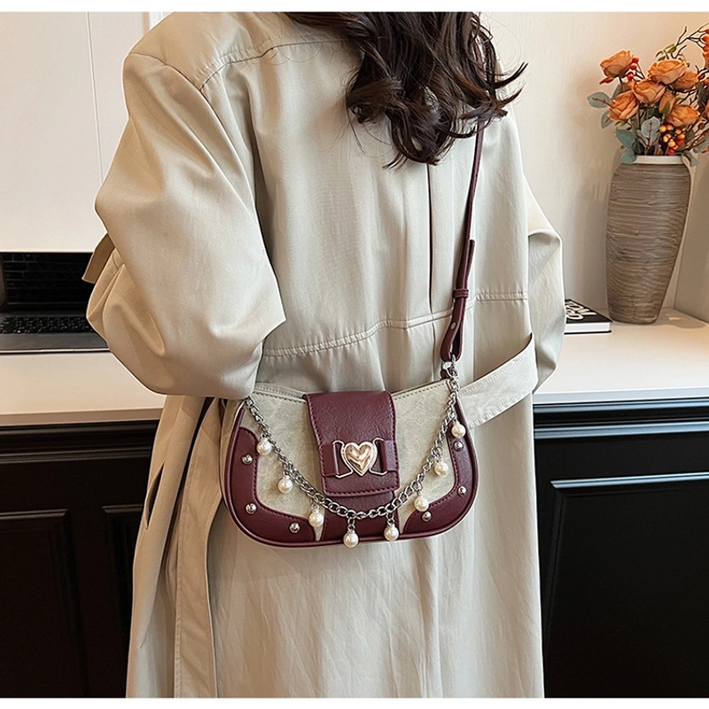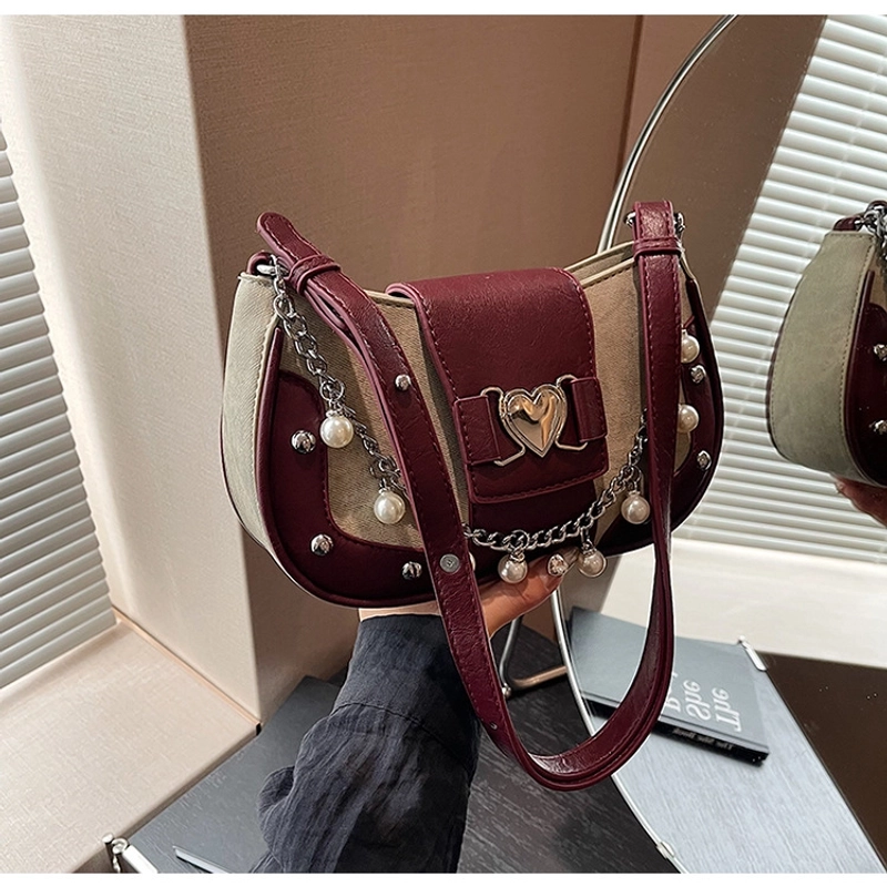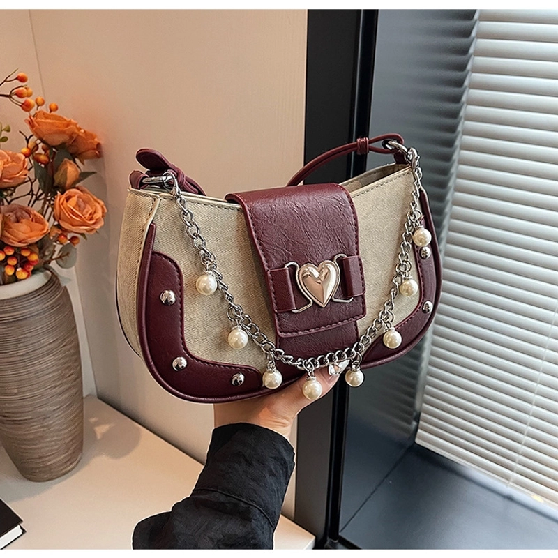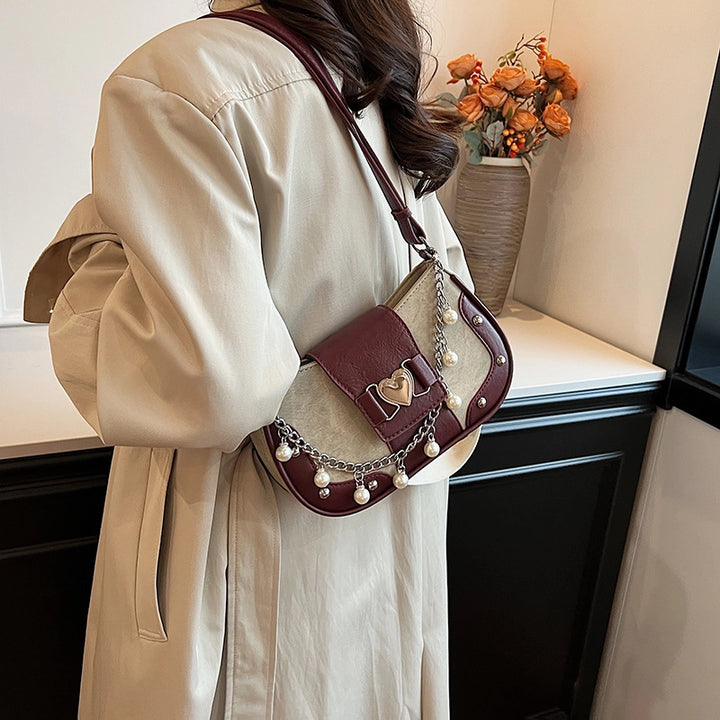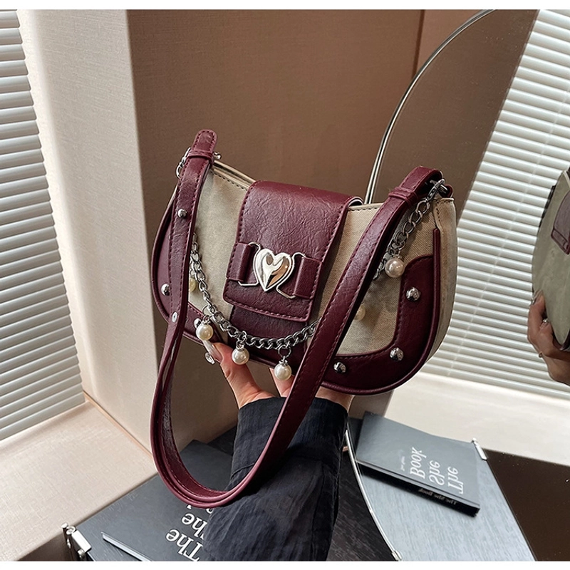 Women'S Small Pu Heart Shape Elegant Basic Classic Style Chain Saddle Shape Buckle Underarm Bag