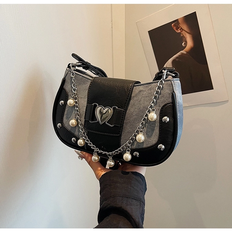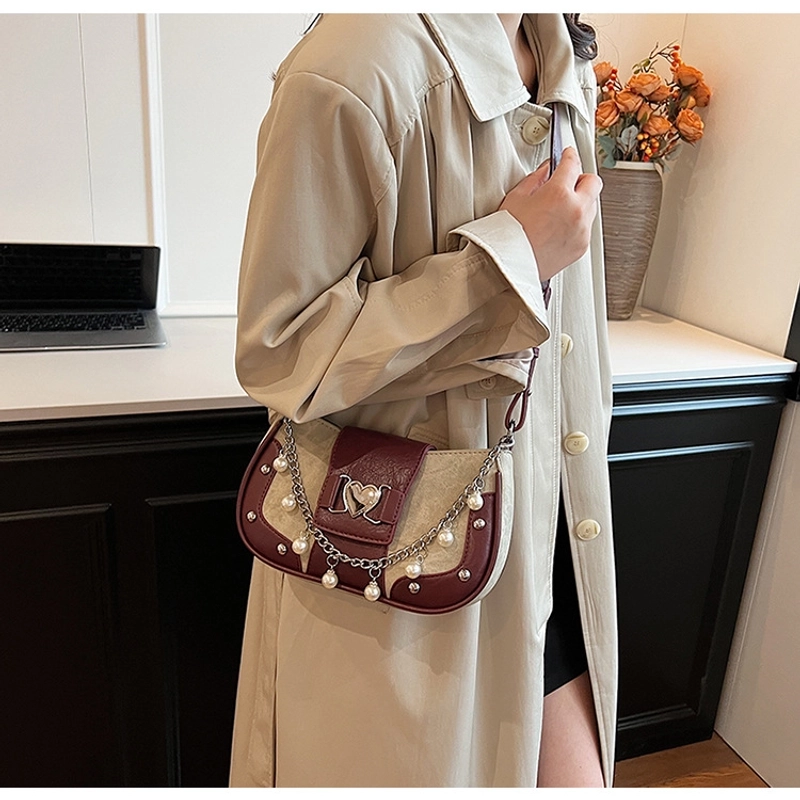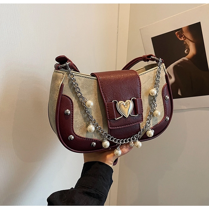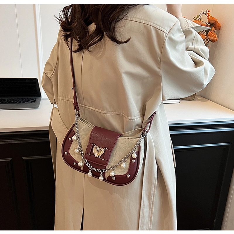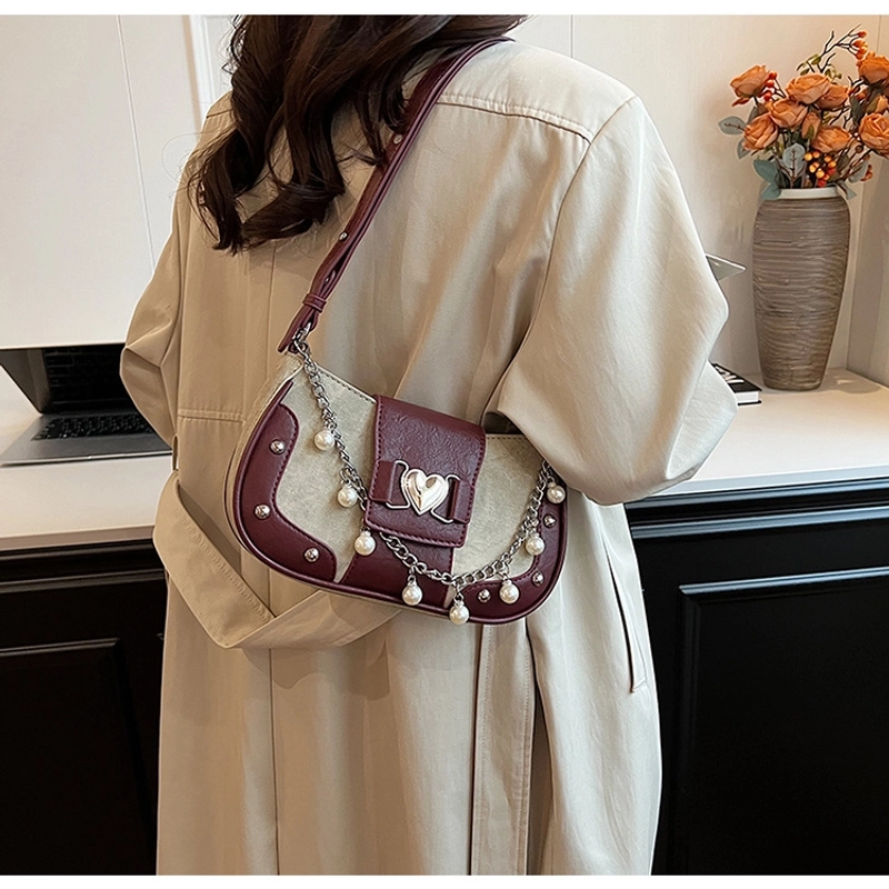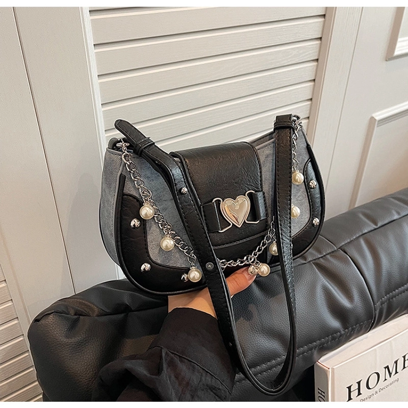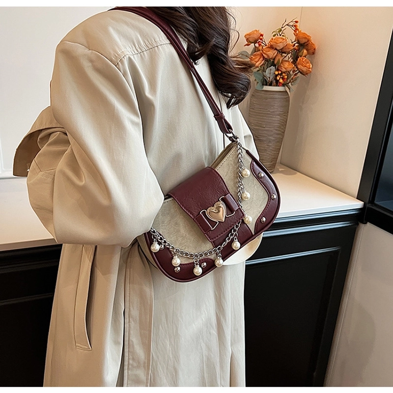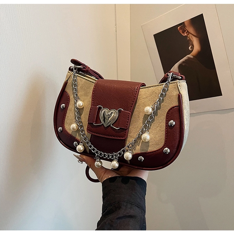 Women'S Small Pu Heart Shape Elegant Basic Classic Style Chain Saddle Shape Buckle Underarm Bag