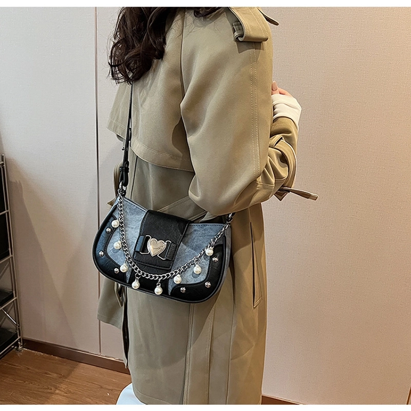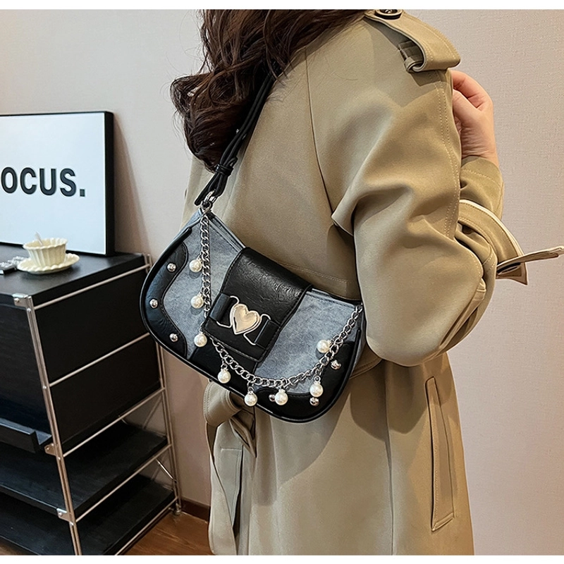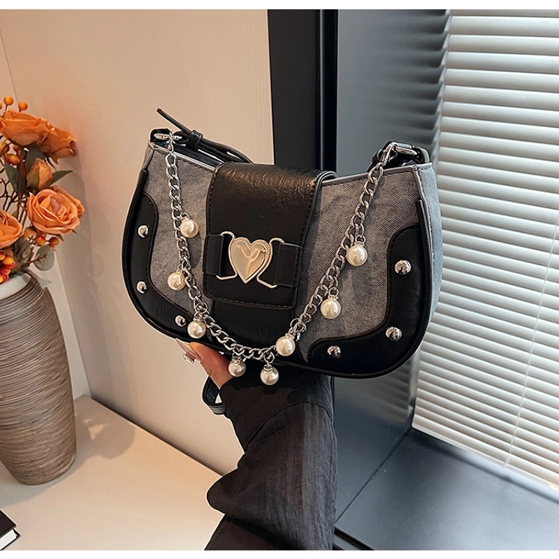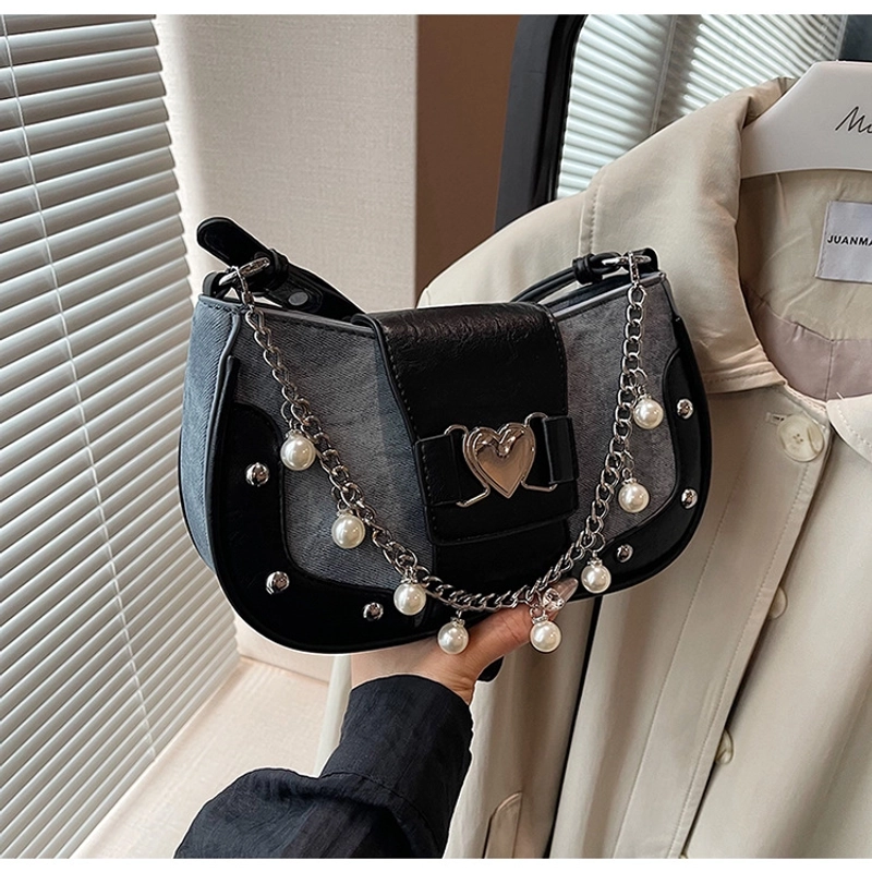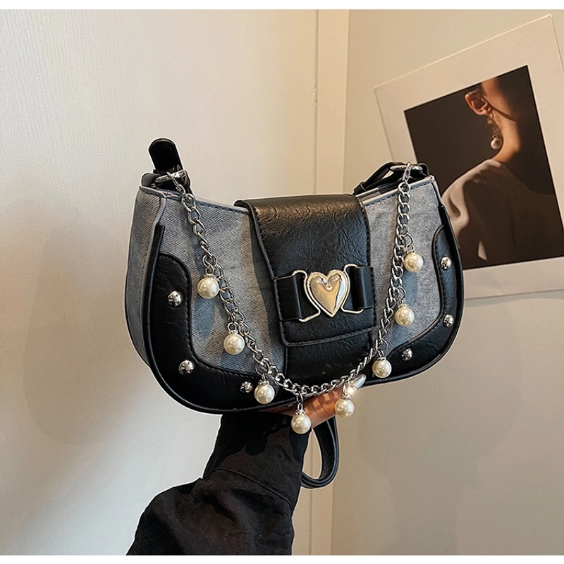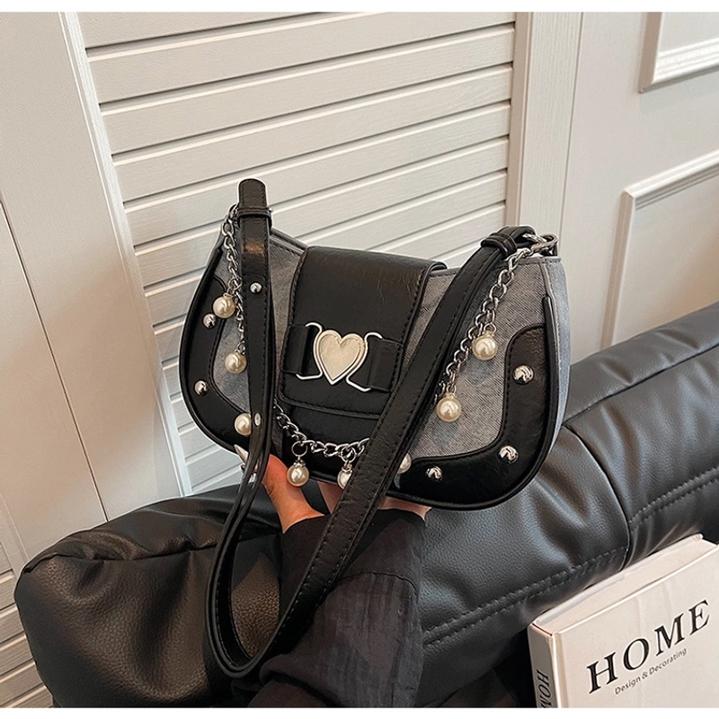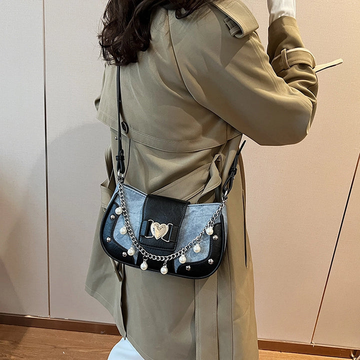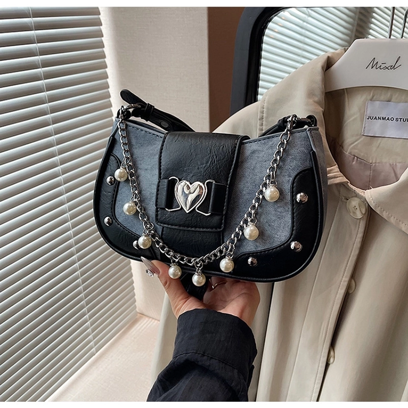 Women'S Small Pu Heart Shape Elegant Basic Classic Style Chain Saddle Shape Buckle Underarm Bag