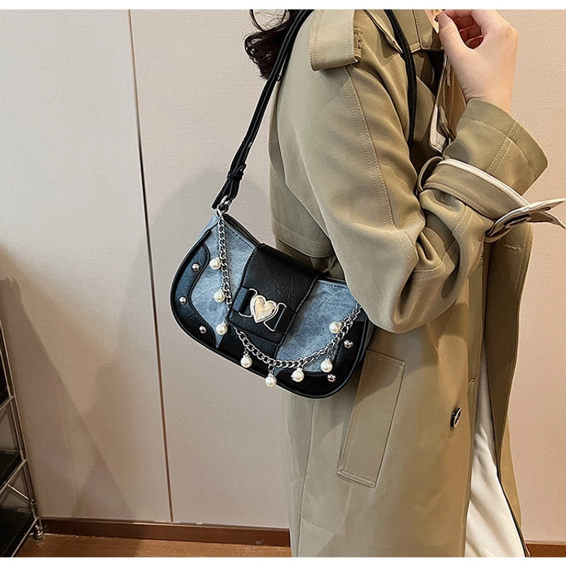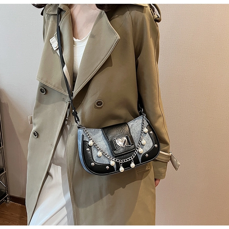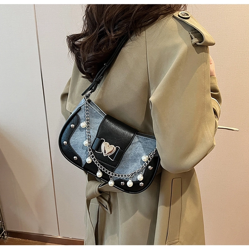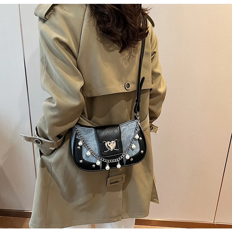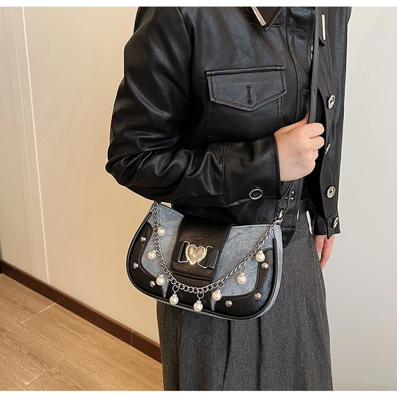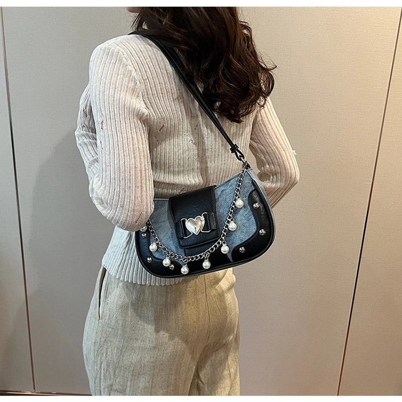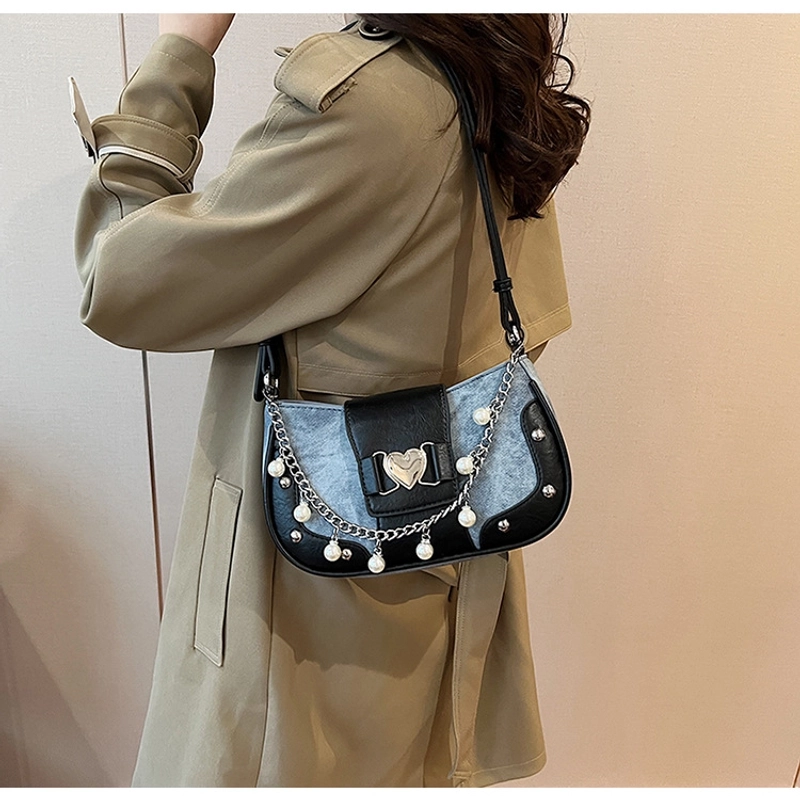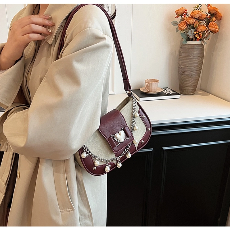 Women'S Small Pu Heart Shape Elegant Basic Classic Style Chain Saddle Shape Buckle Underarm Bag