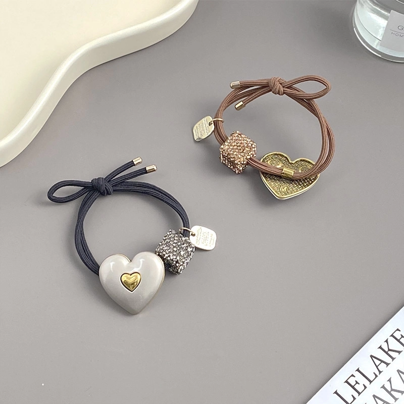 Women'S Streetwear Heart Shape Alloy Rhinestone Hair Tie